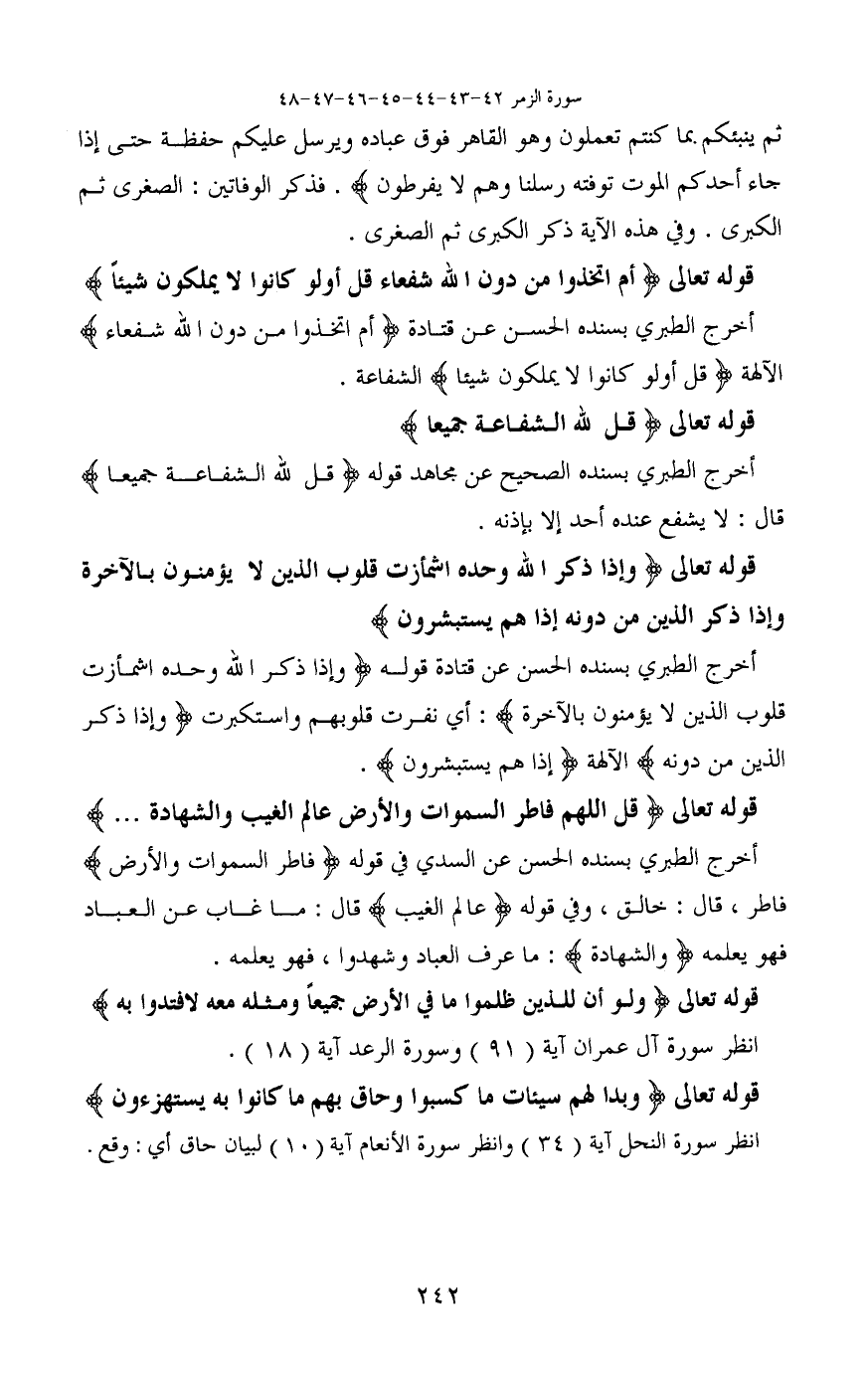 أخرج الطبري بسنده الصحيح عن مجاهد قوله (قُلْ لِلَّهِ الشَّفَاعَةُ جَمِيعًا) قال: لا يشفع عنده أحد إلا بإذنه.