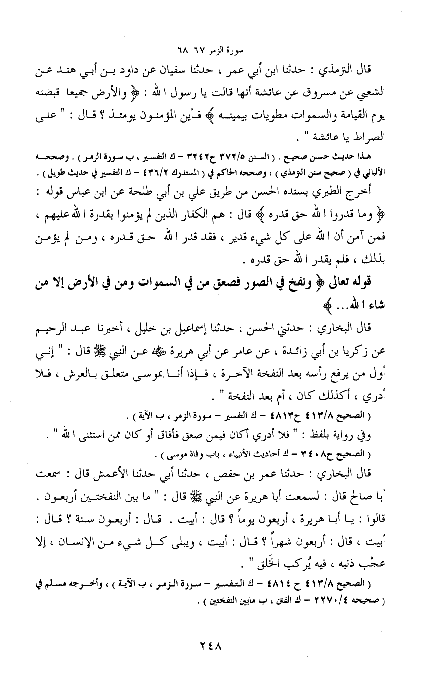(الصحيح 8/413 ح4813 - ك التفسير - سورة الزمر، ب الآية)