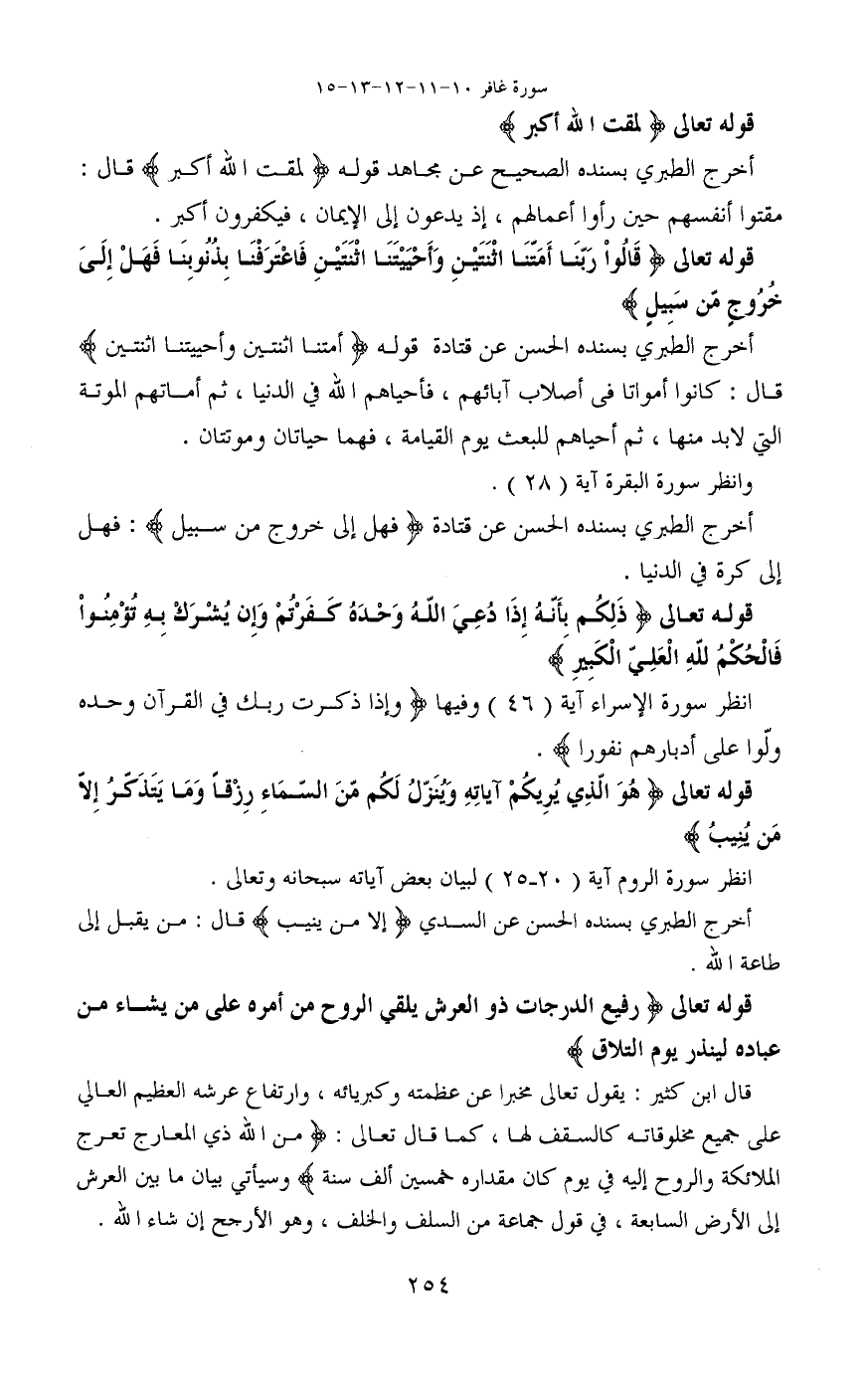 قوله تعالى (رَفِيعُ الدَّرَجَاتِ ذُو الْعَرْشِ يُلْقِي الرُّوحَ مِنْ أَمْرِهِ عَلَى مَنْ يَشَاءُ مِنْ عِبَادِهِ لِيُنْذِرَ يَوْمَ التَّلَاقِ)