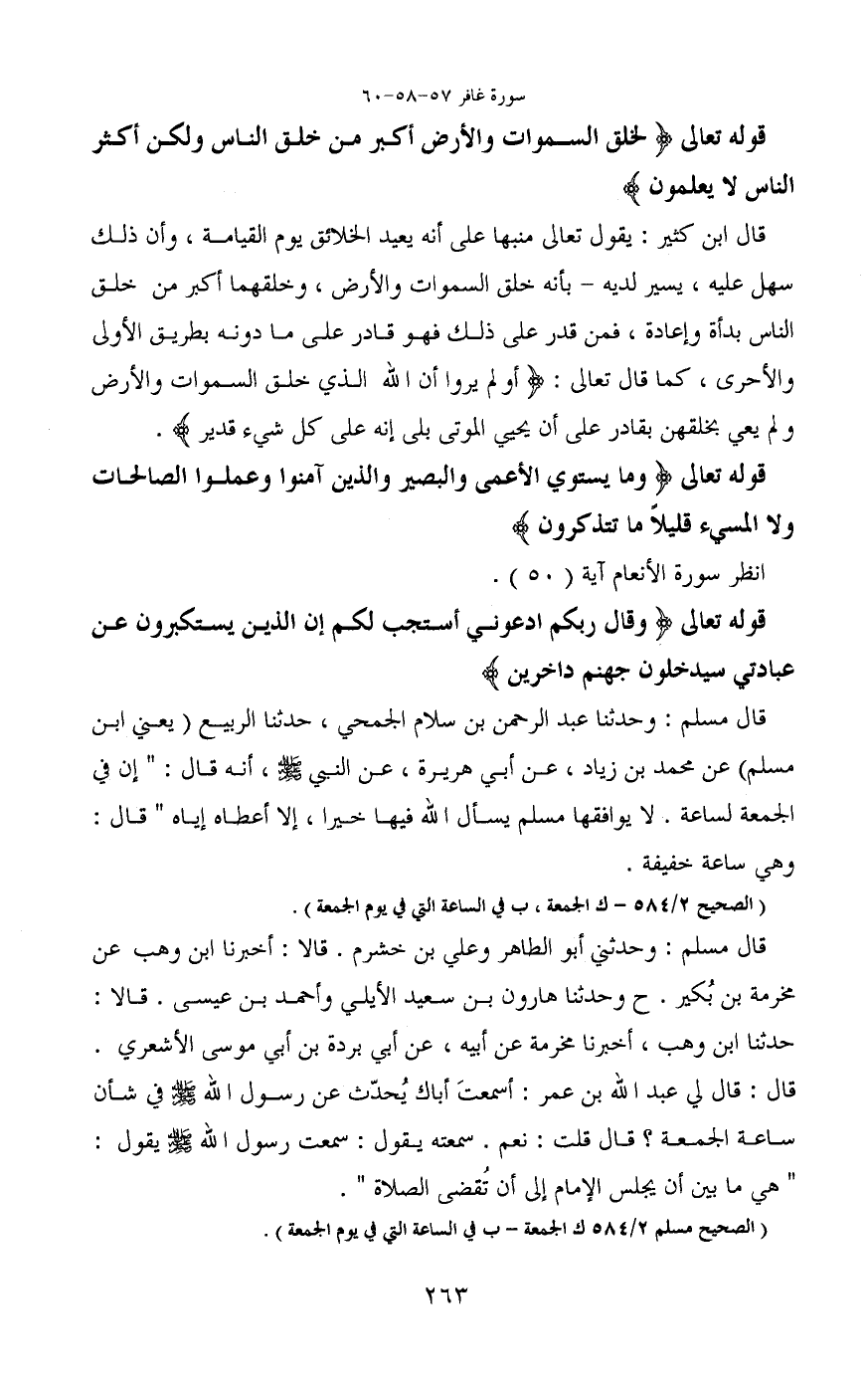 قوله تعالى (لَخَلْقُ السَّمَاوَاتِ وَالْأَرْضِ أَكْبَرُ مِنْ خَلْقِ النَّاسِ وَلَكِنَّ أَكْثَرَ النَّاسِ لَا يَعْلَمُونَ)