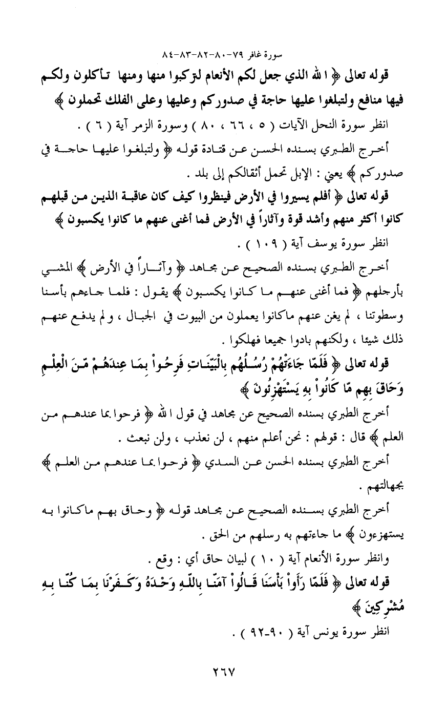 قوله تعالى (اللَّهُ الَّذِي جَعَلَ لَكُمُ الْأَنْعَامَ لِتَرْكَبُوا مِنْهَا وَمِنْهَا تَأْكُلُونَ (79) وَلَكُمْ فِيهَا مَنَافِعُ وَلِتَبْلُغُوا عَلَيْهَا حَاجَةً فِي صُدُورِكُمْ وَعَلَيْهَا وَعَلَى الْفُلْكِ تُحْمَلُونَ)