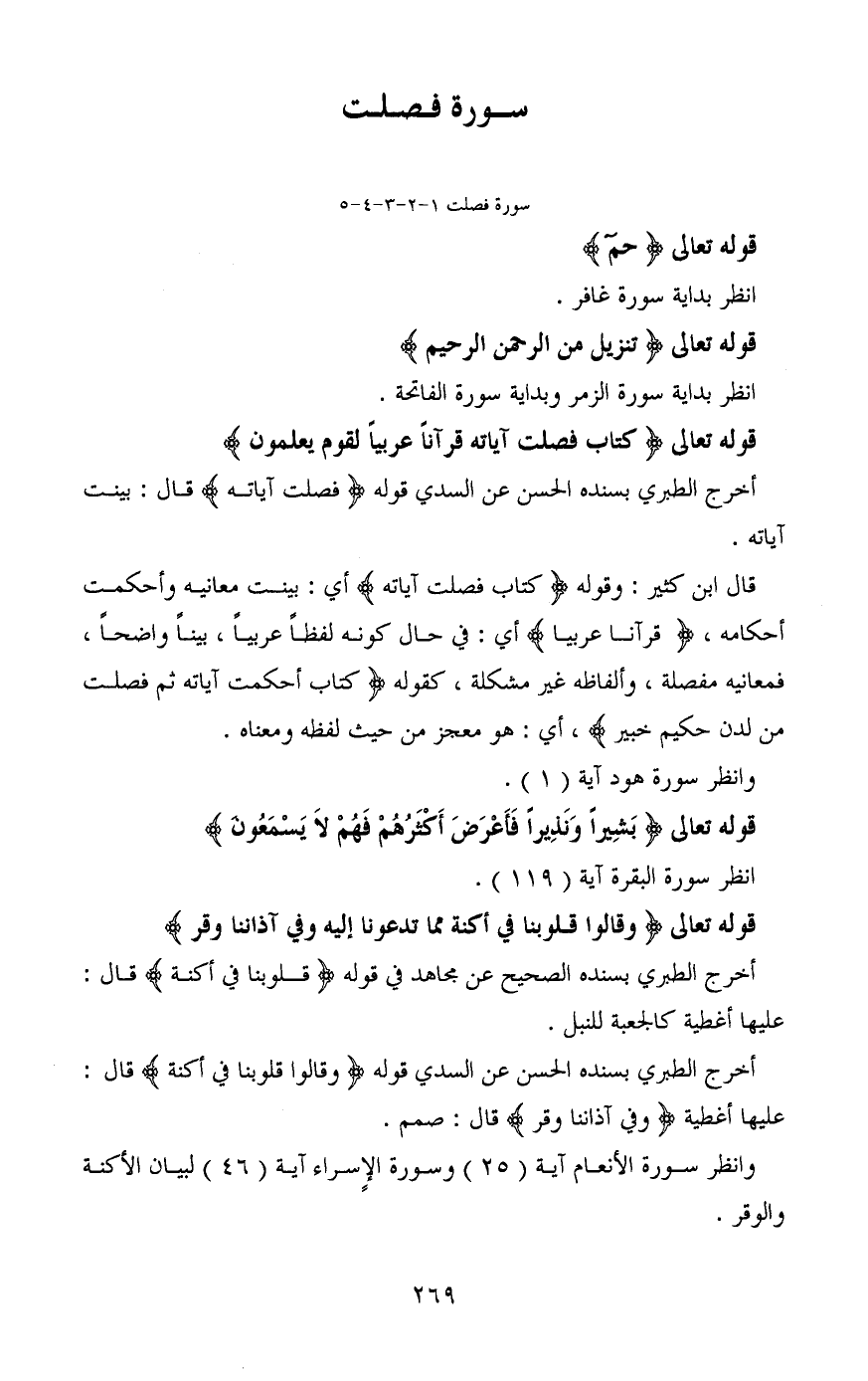 أخرج الطبري بسنده الحسن عن السدي قوله (فصلت آياته) قال: بينت آياته.