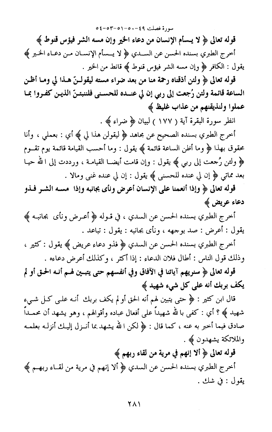 أخرج الطبري بسنده الحسن عن السدي (أَلَا إِنَّهُمْ فِي مِرْيَةٍ مِنْ لِقَاءِ رَبِّهِمْ) يقول: في شك.
