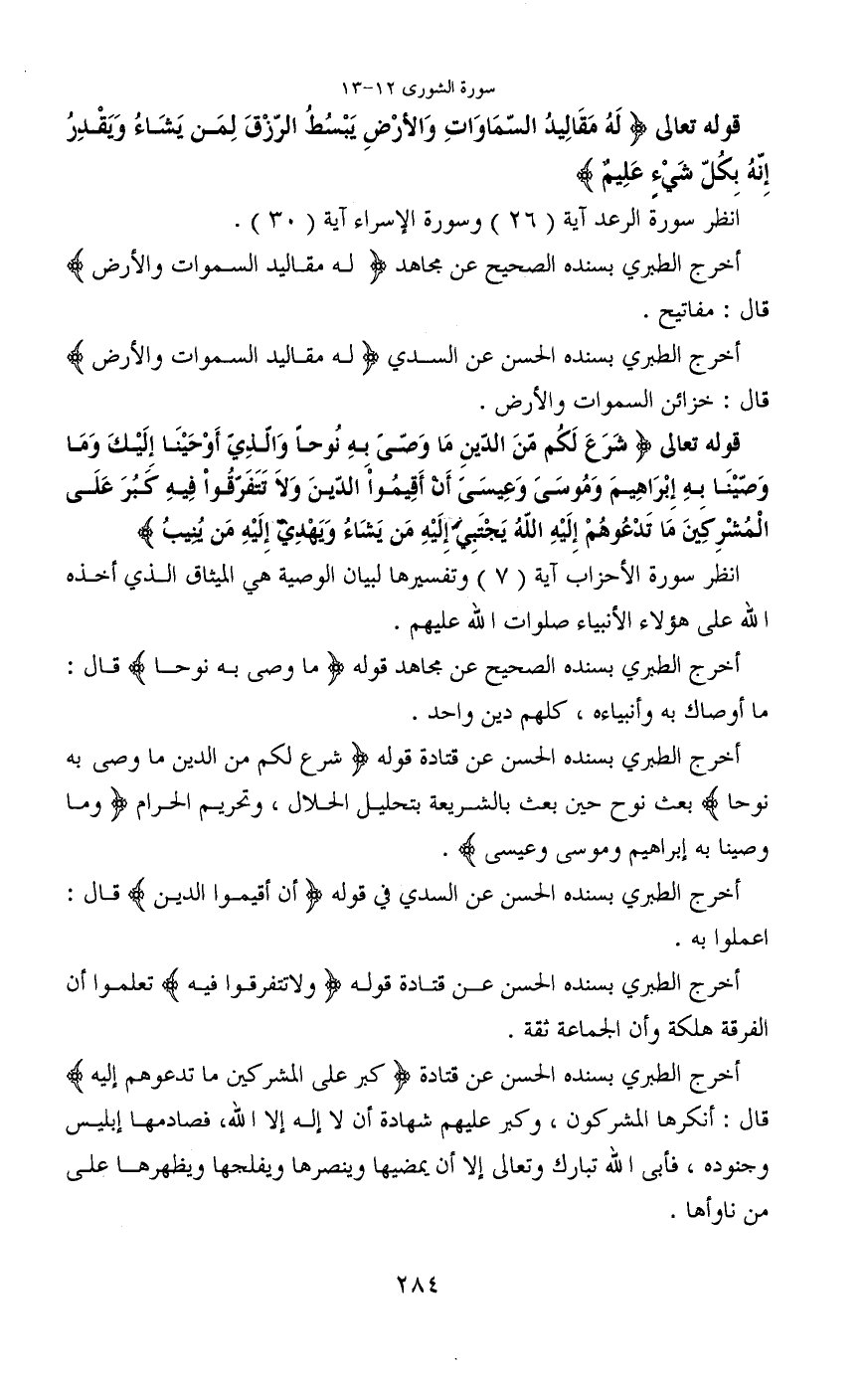 أخرج الطبري بسنده الحسن عن السدي في قوله (أن أقيموا الدين) قال: اعملوا به.