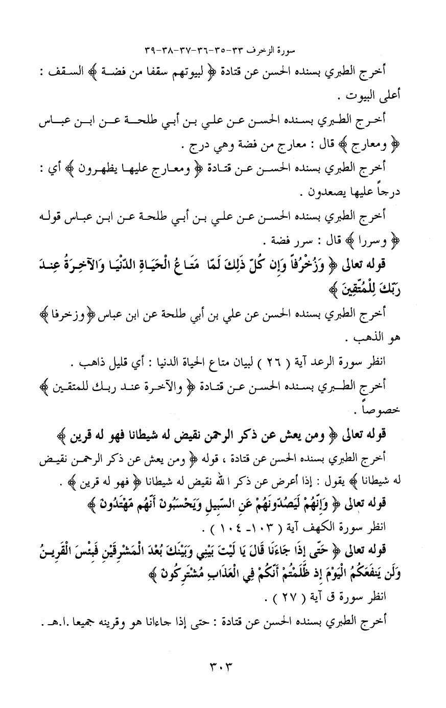 أخرج الطبري بسنده الحسن عن قتادة (لبيوتهم سقفا من فضة) السقف: أعلى البيوت.