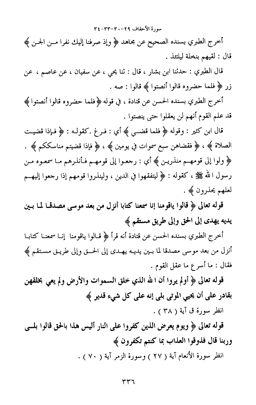 أخرج الطبري بسنده الحسن عن قتادة أنه قرأ (قَالُوا يَا قَوْمَنَا إِنَّا سَمِعْنَا كِتَابًا أُنْزِلَ مِنْ بَعْدِ مُوسَى مُصَدِّقًا لِمَا بَيْنَ يَدَيْهِ يَهْدِي إِلَى الْحَقِّ وَإِلَى طَرِيقٍ مُسْتَقِيمٍ) فقال: ما أسرع ما عقل القوم.