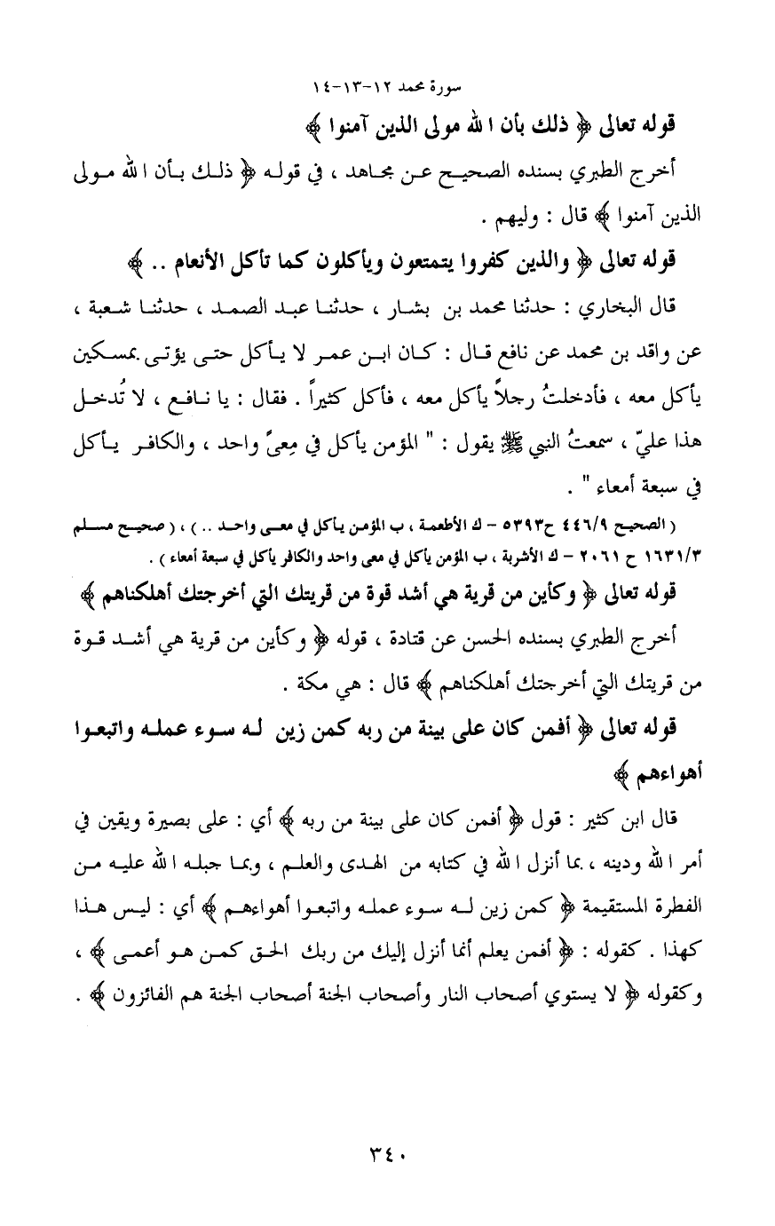 قوله تعالى (وَالَّذِينَ كَفَرُوا يَتَمَتَّعُونَ وَيَأْكُلُونَ كَمَا تَأْكُلُ الْأَنْعَامُ…)