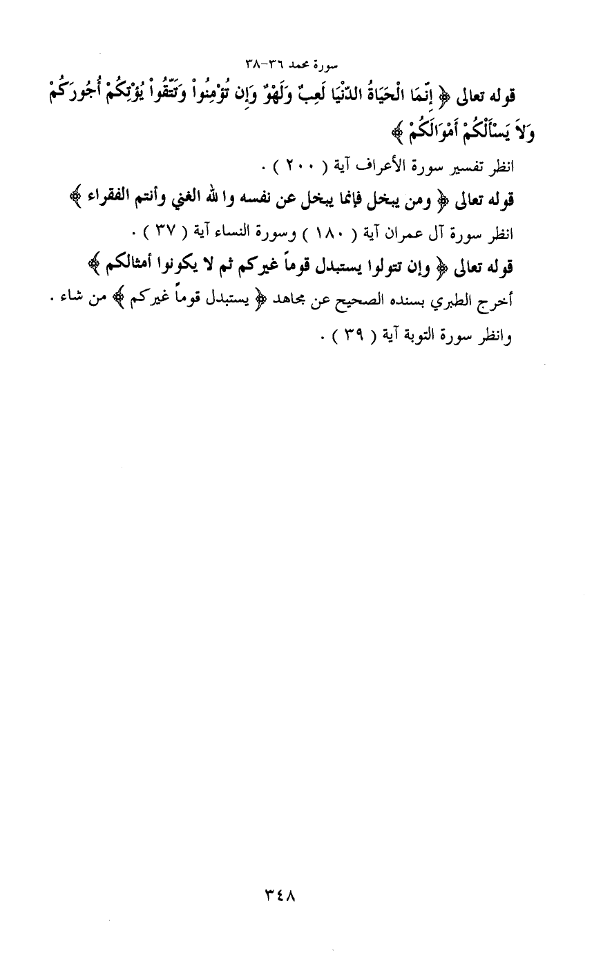 قوله تعالى (وَمَنْ يَبْخَلْ فَإِنَّمَا يَبْخَلُ عَنْ نَفْسِهِ وَاللَّهُ الْغَنِيُّ وَأَنْتُمُ الْفُقَرَاءُ) انظر سورة آل عمران آية (180) وسورة النساء آية (37) .