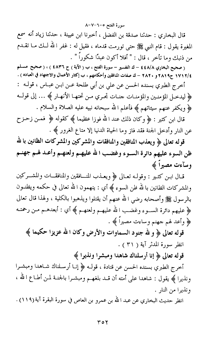 (صحيح البخاري 8/448 - ك التفسير - سورة الفتح، ب (الآية) ح4836) ، (صحيح مسلم 4/1712 ح2819 و2820 - ك صفات المنافقين وأحكامهم، ب إكثار الأعمال والاجتهاد في العبادة) .