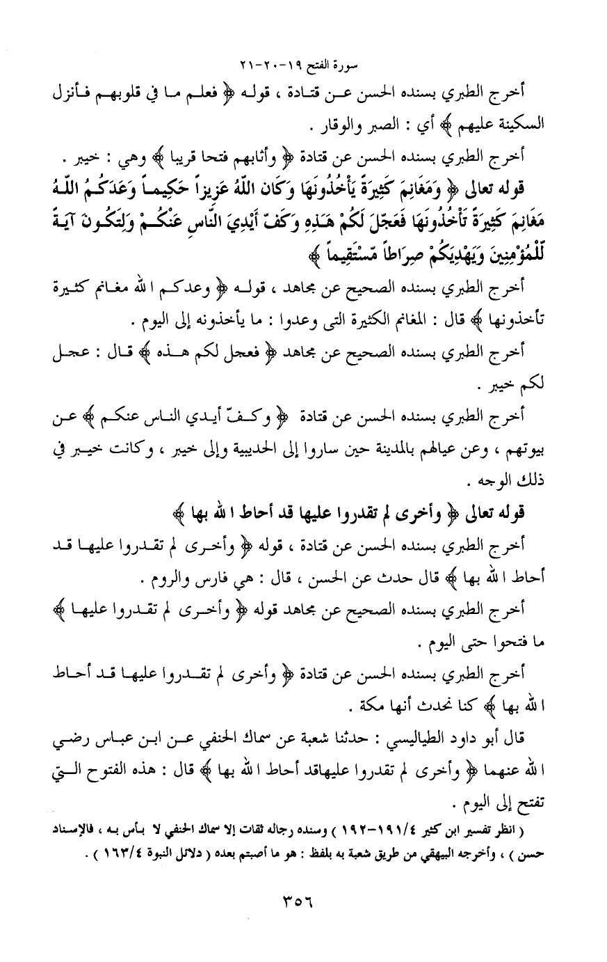 أخرج الطبري بسنده الصحيح عن مجاهد، قوله (وعدكم الله مغانم كثيرة تأخذونها) قال: المغانم الكثيرة التي وعدوا: ما يأخذونه إلى اليوم.
