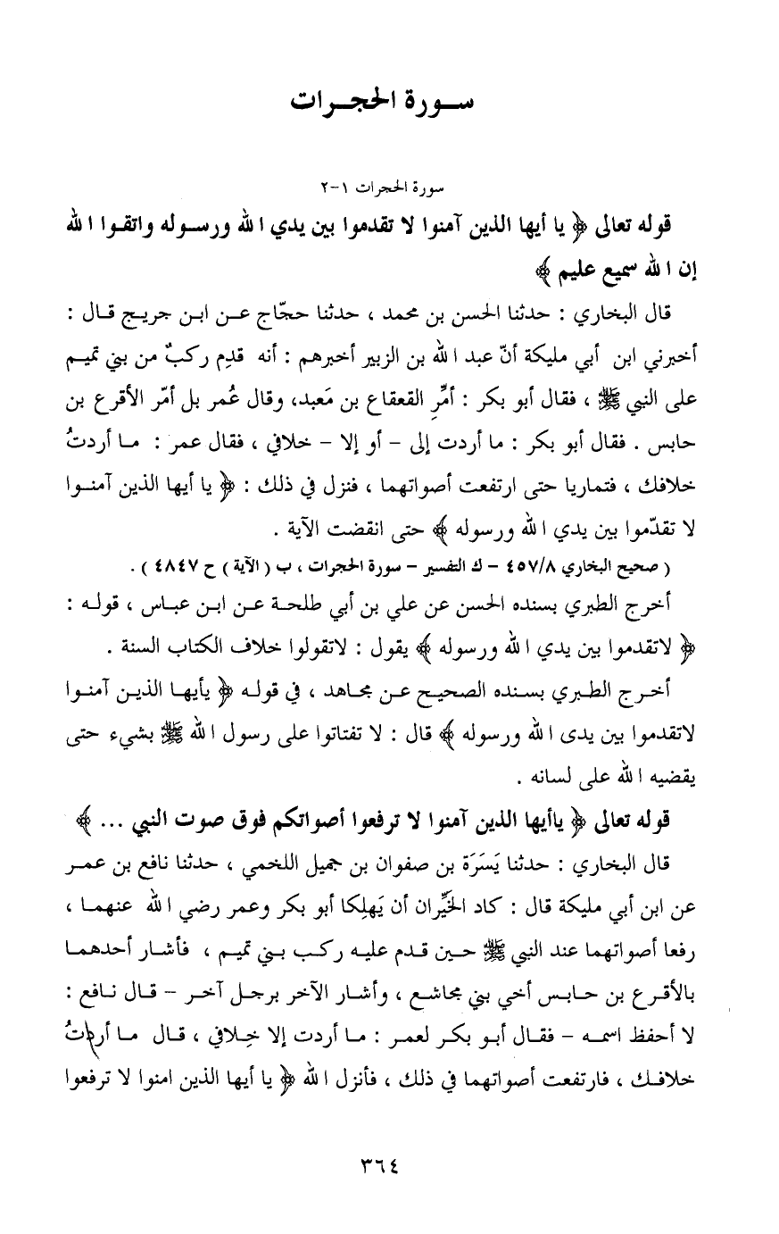 (صحيح البخاري 8/457 - ك التفسير - سورة الحجرات، ب (الآية) ح4847) .