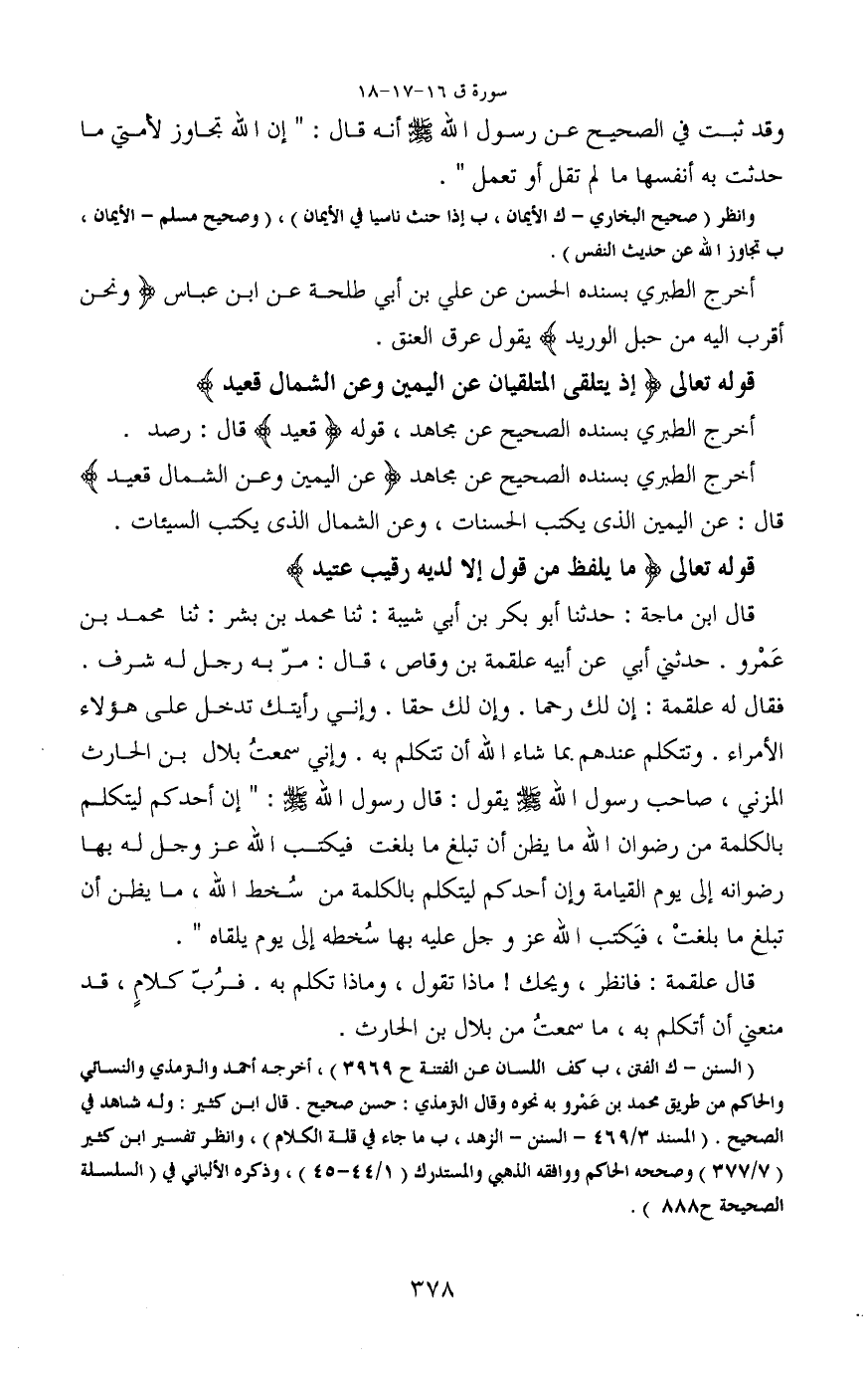 قوله تعالى (إِذْ يَتَلَقَّى الْمُتَلَقِّيَانِ عَنِ الْيَمِينِ وَعَنِ الشِّمَالِ قَعِيدٌ)