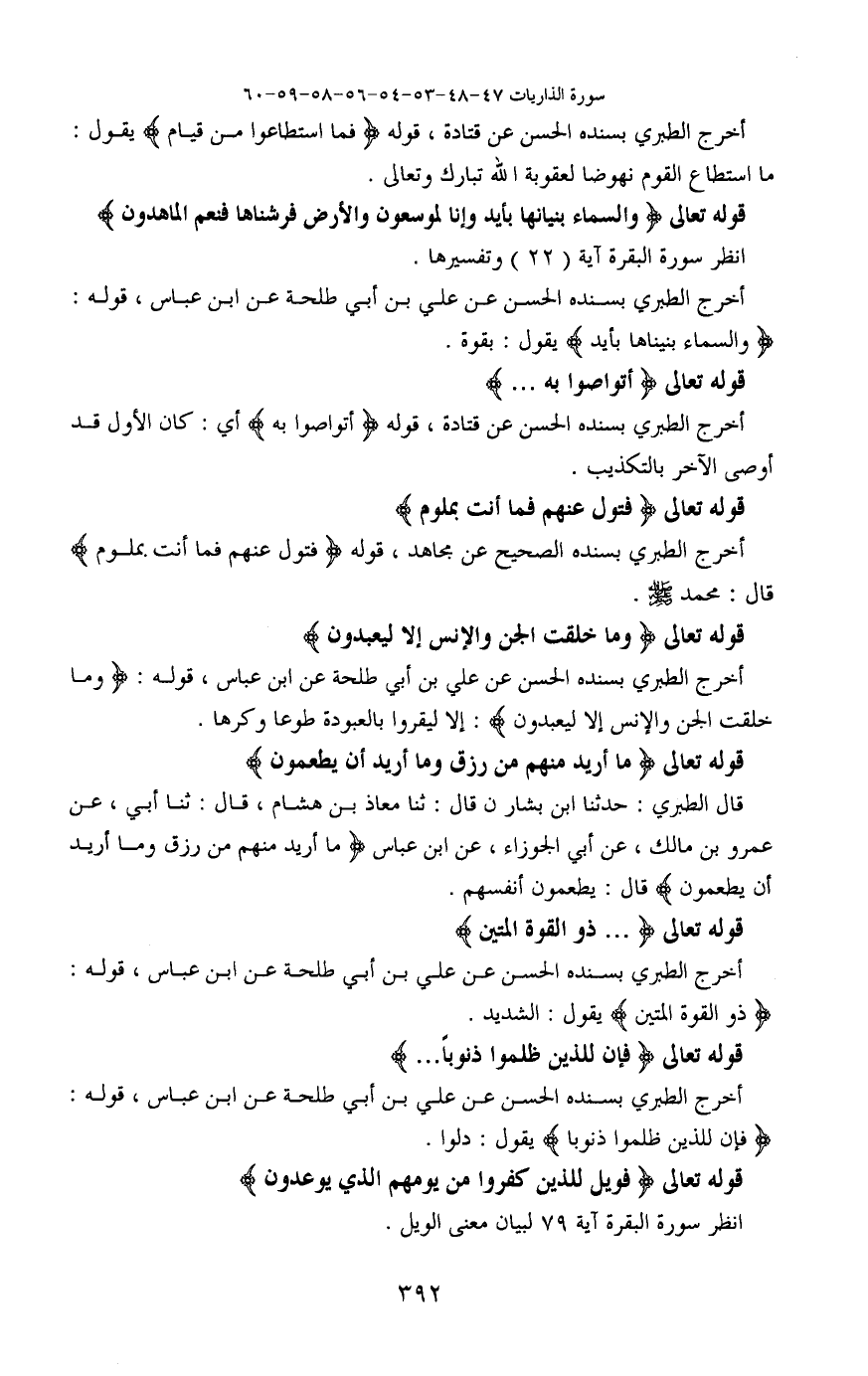 (أخرج الطبري بسنده الحسن عن علي بن أبي طلحة عن ابن عباس، قوله: (والسماء بيناها بأيد) يقول: بقوة.