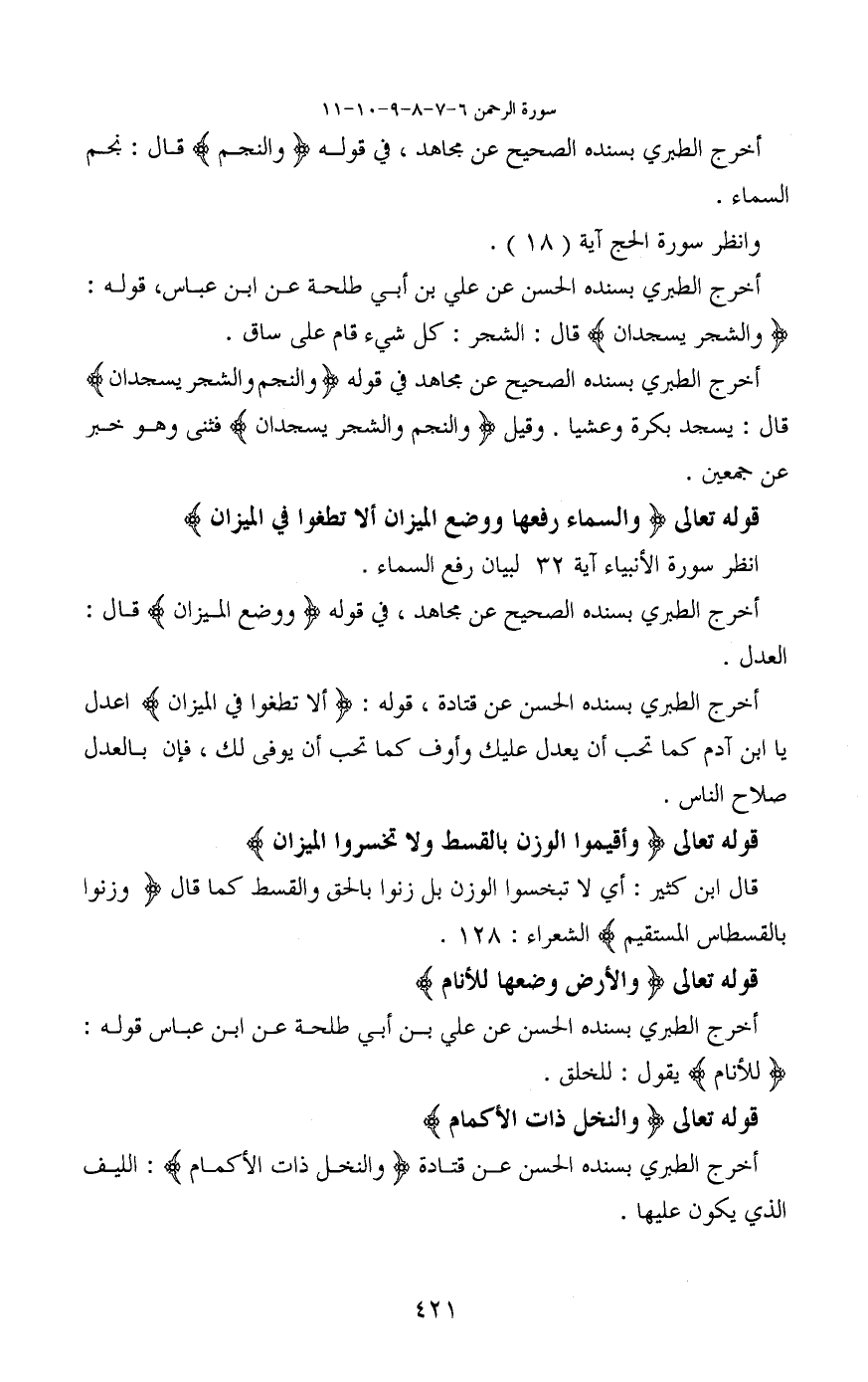 أخرج الطبري بسنده الصحيح عن مجاهد في قوله (وَوَضَعَ الْمِيزَانَ) قال: العدل.