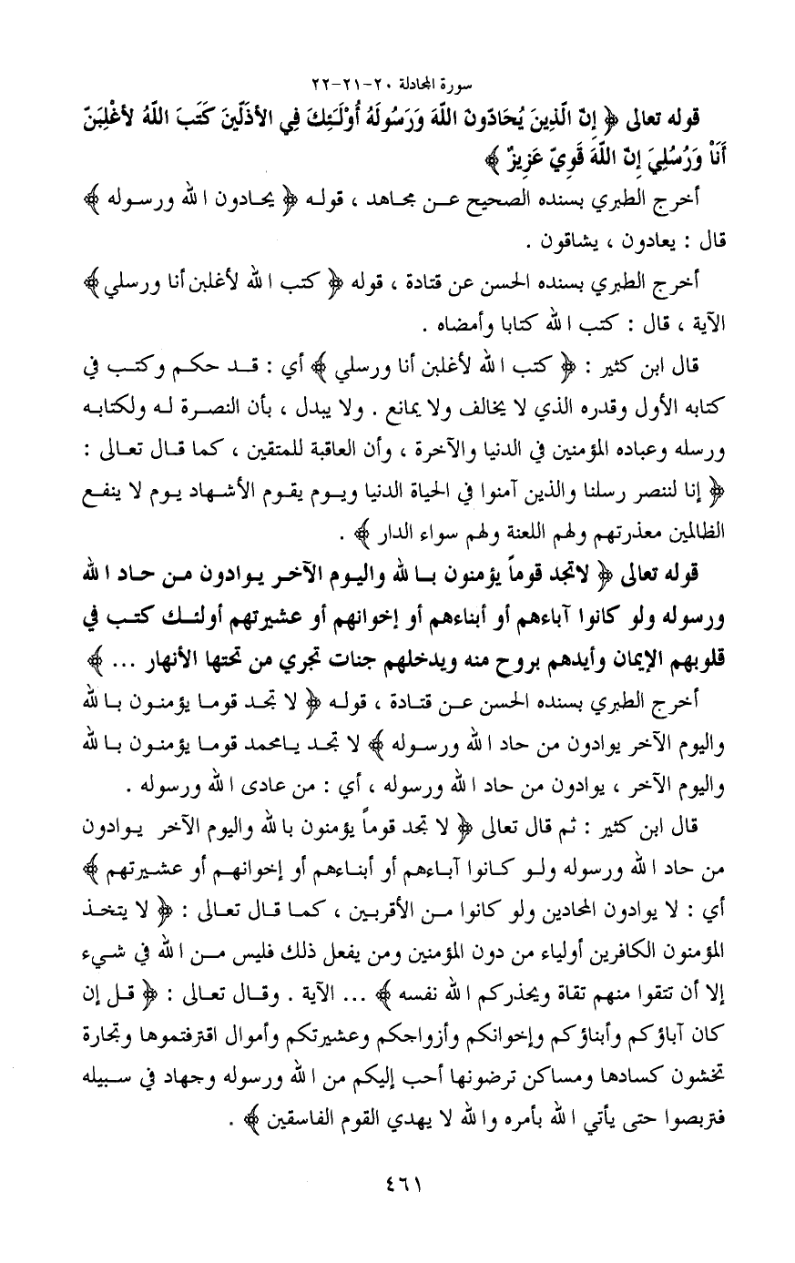 قوله تعالى (إِنَّ الَّذِينَ يُحَادُّونَ اللَّهَ وَرَسُولَهُ أُولَئِكَ فِي الْأَذَلِّينَ (20) كَتَبَ اللَّهُ لَأَغْلِبَنَّ أَنَا وَرُسُلِي إِنَّ اللَّهَ قَوِيٌّ عَزِيزٌ)