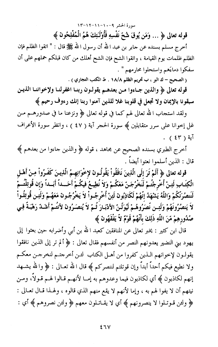 قوله تعالى ( ... وَمَنْ يُوقَ شُحَّ نَفْسِهِ فَأُولَئِكَ هُمُ الْمُفْلِحُونَ)