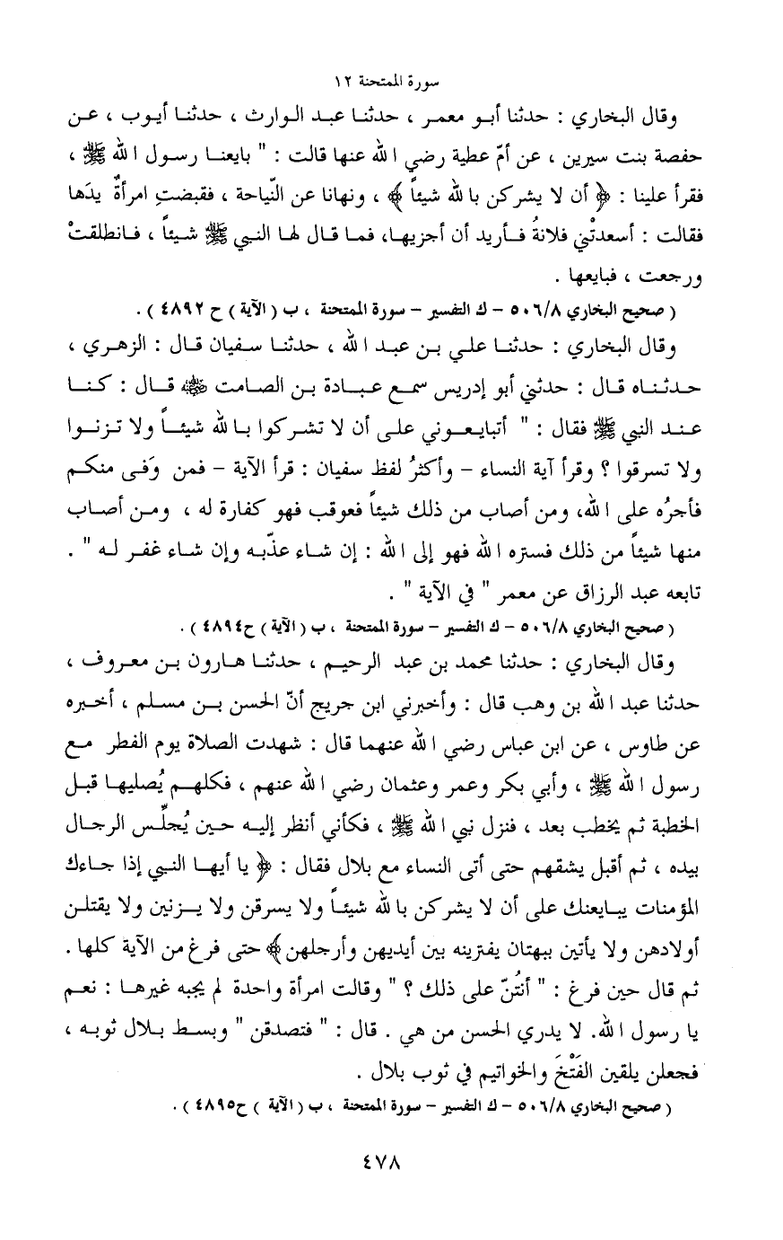 (صحيح البخاري 8/506 - ك التفسير - سور الممتحنة، ب (الآية) ح4894) .