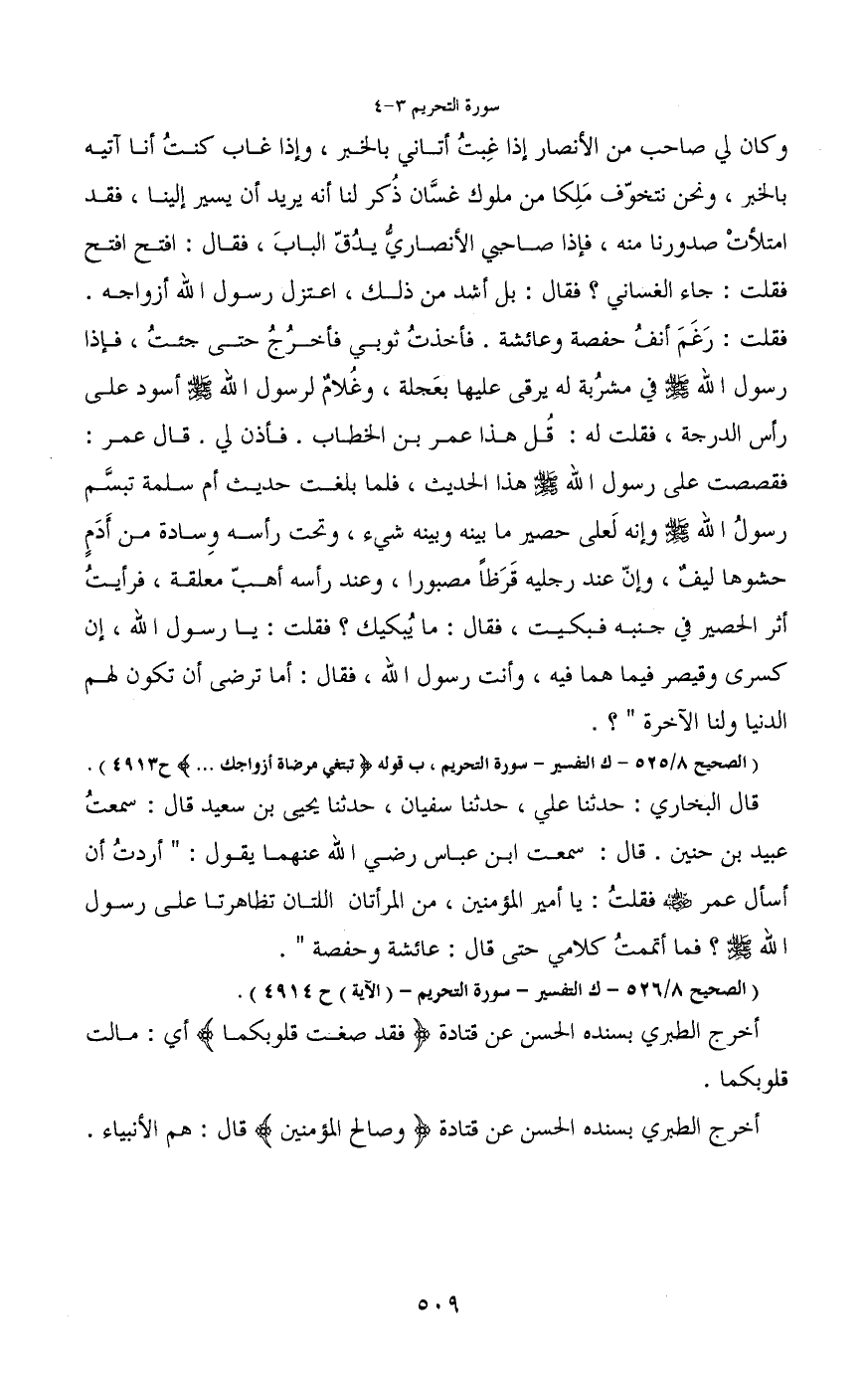 (الصحيح 8/526- ك التفسير- سورة التحربم- (الآية) ح 4914) .