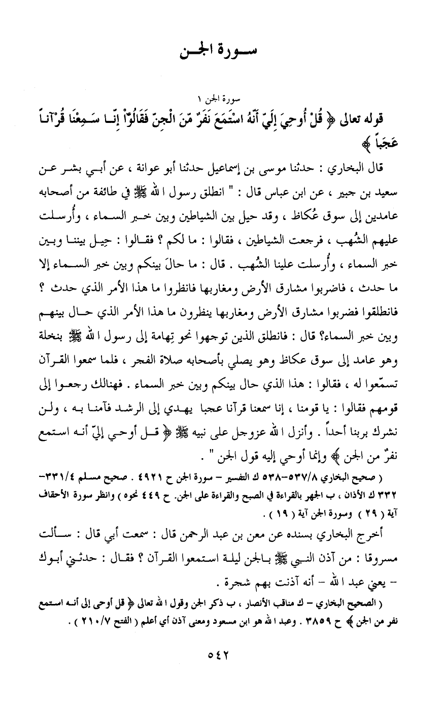 (صحيح البخاري 8/537-538 ك التفسير- سورة الجن ح 4921. صحيح مسلم 4/331- 332 ك الأذان، ب الجهر بالقراءة في الصبح والقراءة على الجن ح 449 نحوه) وانظر سورة الأحقاف آية (29) وسورة الجن آية (19) .