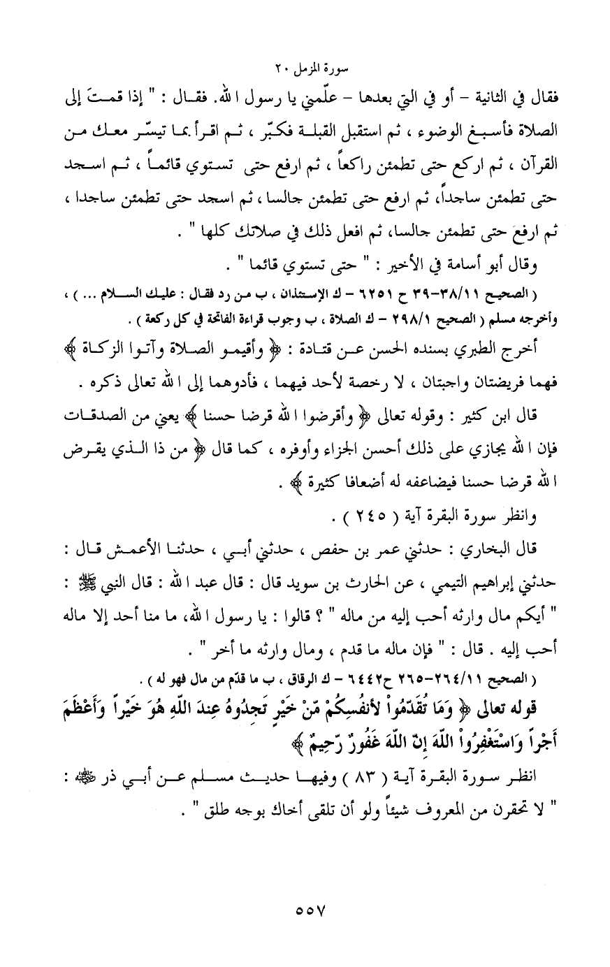 قوله تعالى (وَمَا تُقَدِّمُوا لِأَنْفُسِكُمْ مِنْ خَيْرٍ تَجِدُوهُ عِنْدَ اللَّهِ هُوَ خَيْراً وَأَعْظَمَ أَجْراً وَاسْتَغْفِرُوا اللَّهَ إِنَّ اللَّهَ غَفُورٌ رَحِيمٌ)