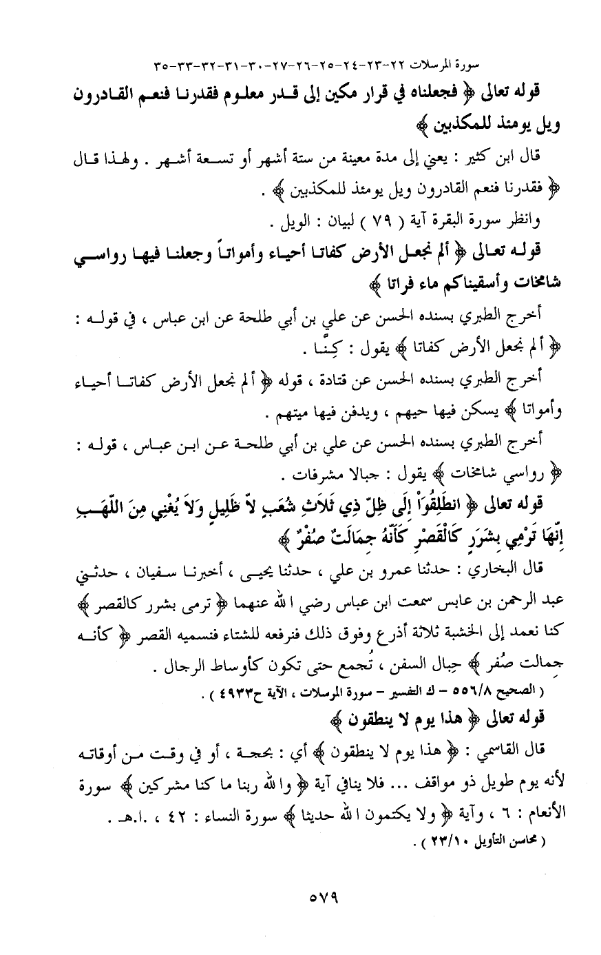 (الصحيح 8/556- ك التفسير- سورة المرسلات، الآية ح 4933) .