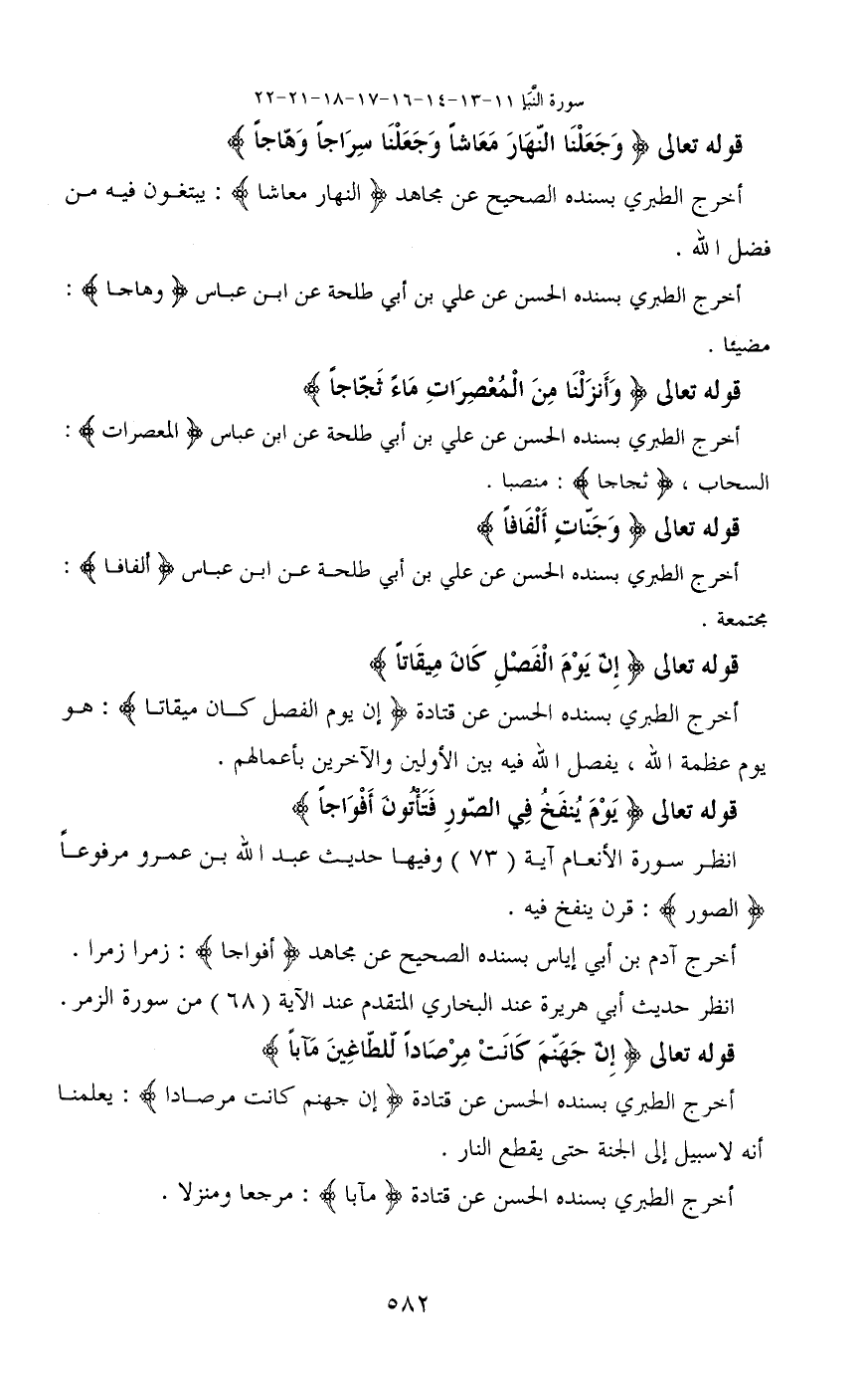 أخرج الطبري بسنده الحسن عن قتادة (إن جهنم كانت مرصادا) : يعلمنا أنه لا سبيل إلى الجنة حتى يقطع النار.