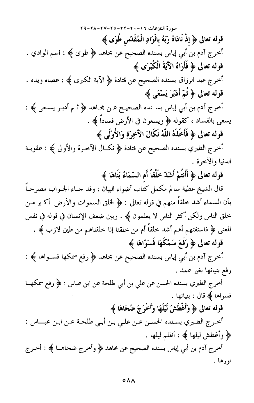 أخرج آدم بن أبي إياس بسنده الصحيح عن مجاهد (رفع سمكها فسواها) : رفع بنيانها بغير عمد.