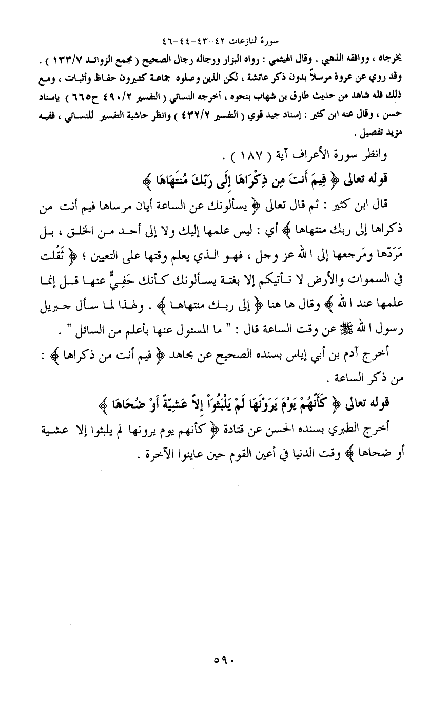 قوله تعالى (فِيمَ أَنْتَ مِنْ ذِكْرَاهَا (43) إِلَى رَبِّكَ مُنْتَهَاهَا)