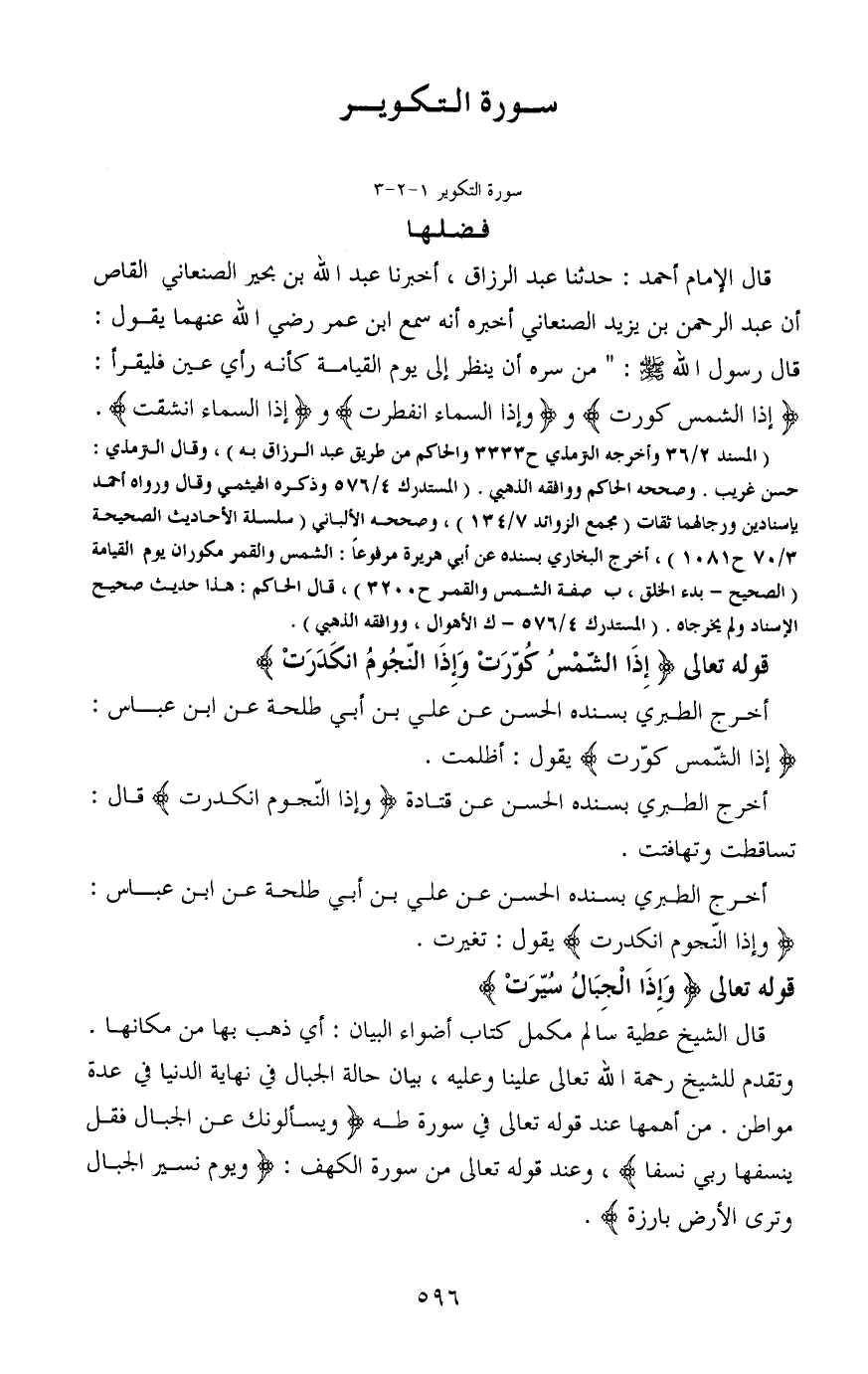 أخرج الطبري بسنده الحسن عن علي بن أبي طلحة عن ابن عباس: (إذا الشّمس كوّرت) يقول: أظلمت.