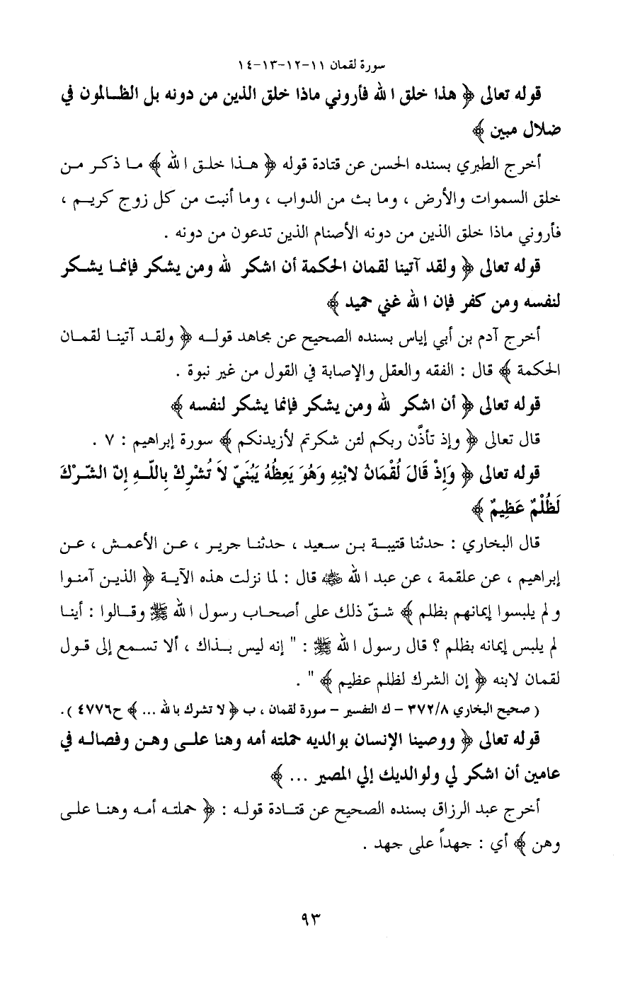 (صحيح البخاري 8/372 - ك التفسير - سورة لقمان، ب (لا تشرك بالله ... ) ح4776) .