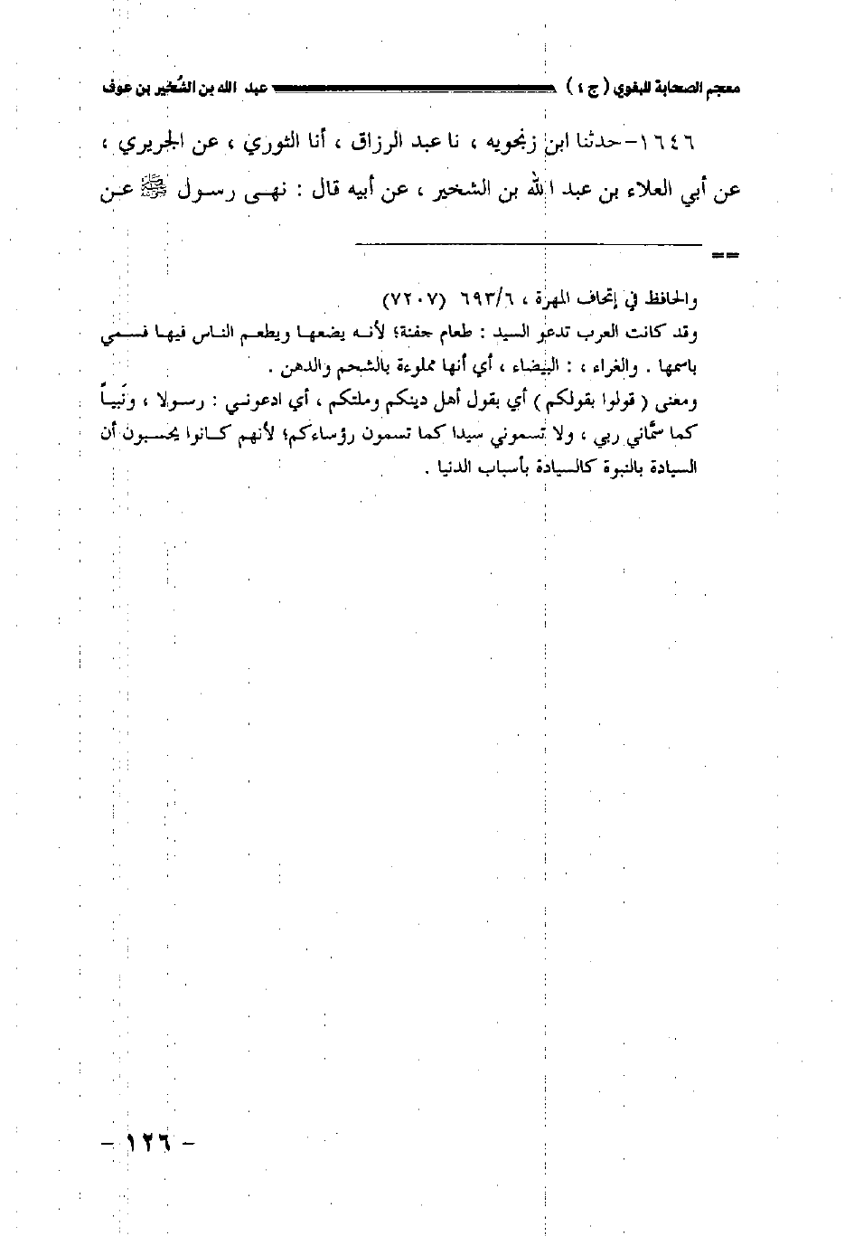 ١٦٤٦ - حدثنا ابن زنجويه نا عبد الرزاق أخبرنا الثوري عن الجريري عن أبي العلاء بن عبد الله بن الشخير عن أبيه قال: نهى رسول الله صلى الله عليه وسلم عن
