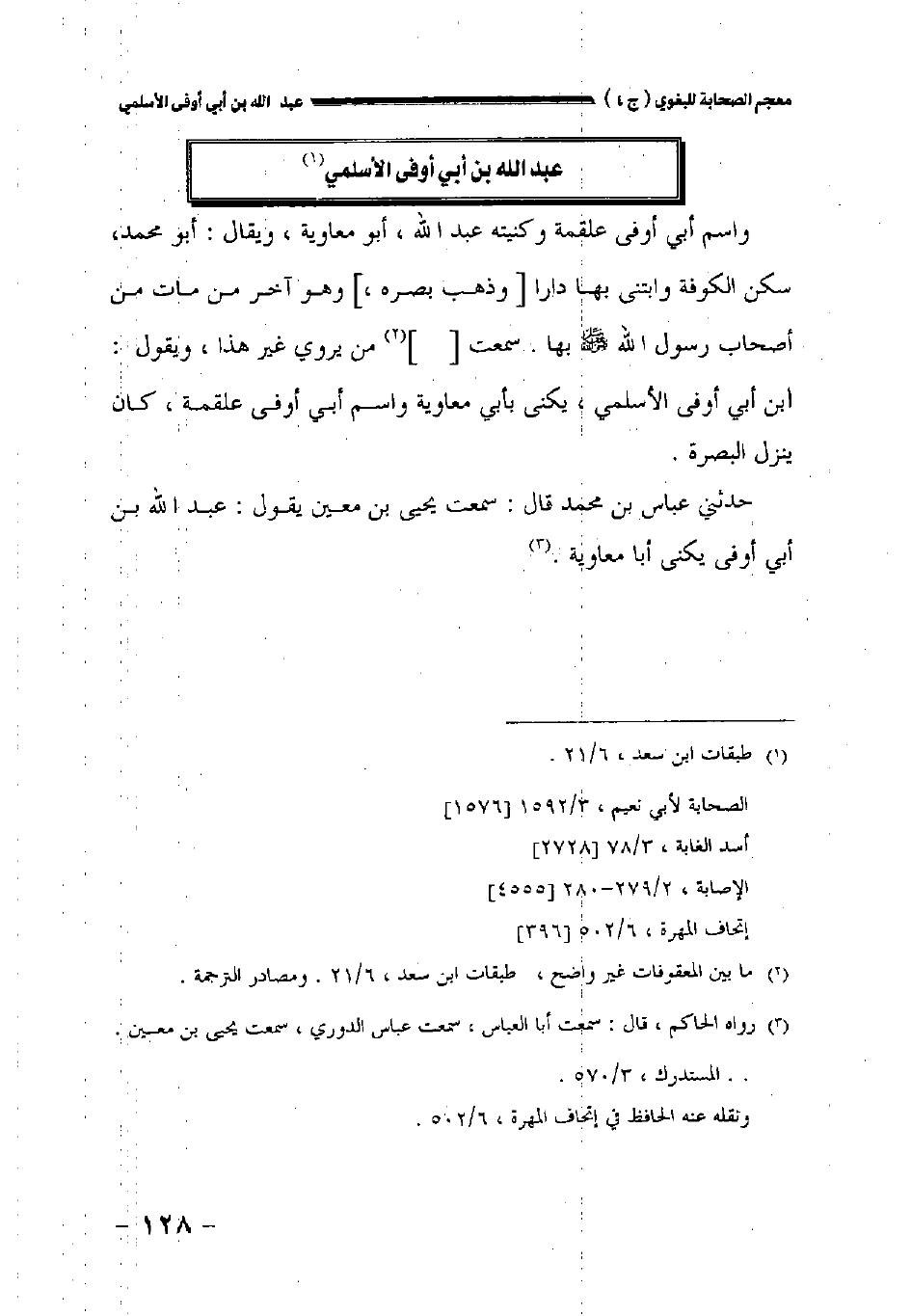 حدثني عباس بن محمد قال: سمعت يحيى بن معين يقول: عبد الله بن أبي أوفى يكنى أبا معاوية.