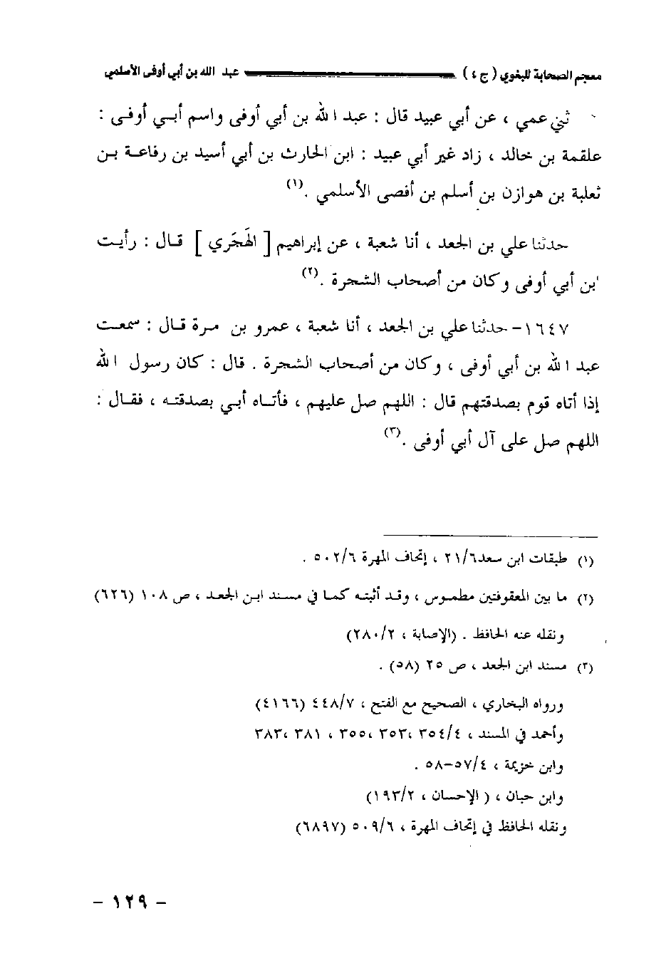 حدثنا علي بن الجعد أخبرنا شعبة عن إبراهيم [الهجري] قال: رأيت ابن أبي أوفى وكان من أصحاب الشجرة.