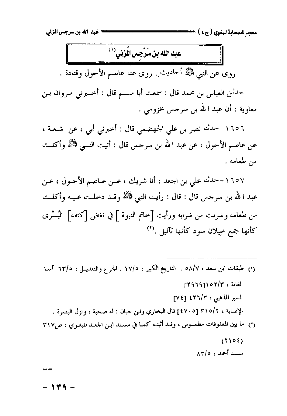 حدثني العباس بن محمد قال: سمعت أبا مسلم قال: أخبرني مروان بن معاوية: أن عبد الله بن سرجس مخزومي.