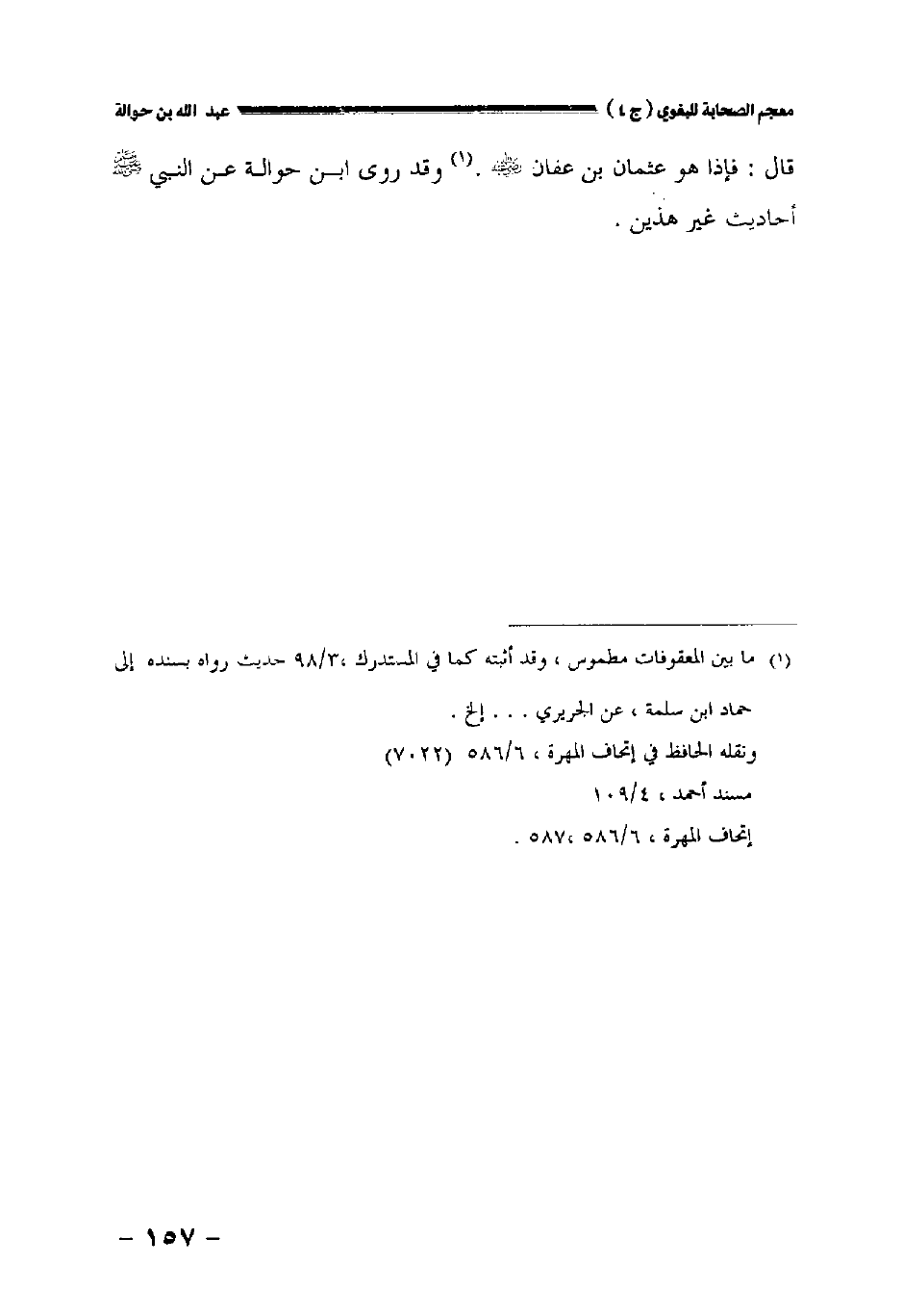 ، قال: فإذا هو عثمان بن عفان، رضي الله عنه. وقد روى ابن حوالة عن النبي صلى الله عليه وسلم أحاديث غير هذين.