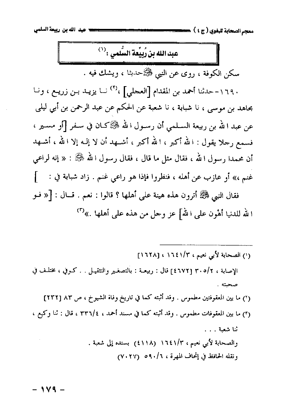 ونا مجاهد بن موسى نا شبابة نا شعبة عن الحكم عن عبد الرحمن بن أبي ليلى عن عبد الله بن ربيعة السلمي أن رسول الله صلى الله عليه وسلم كان في سفر [أو مسير فسمع رجلا يقول: الله أكبر الله أكبر أشهد أن لا إله إلا الله أشهد أن محمدا رسول الله فقال مثل ما قال فقال رسول الله صلى الله عليه وسلم: " إنه لراعي غنم " أو عازب عن أهله فنظروا فإذا هو راعي غنم: زاد شبابة في:]