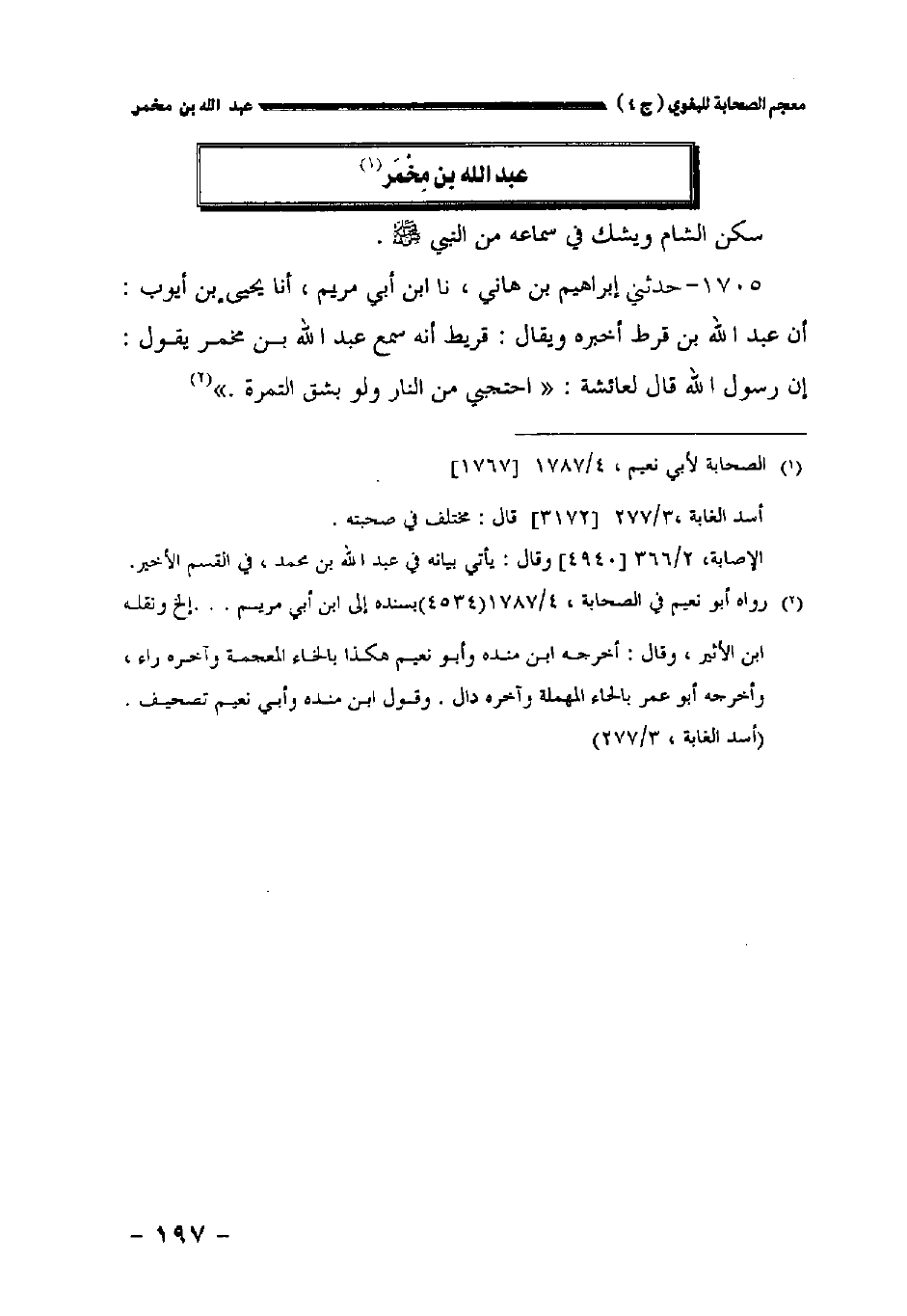 ١٧٠٥ - حدثني إبراهيم بن هاني نا ابن أبي مريم أخبرنا يحيى بن أيوب: أن عبد الله بن قرط أخبره ويقال: قريط أنه سمع عبد الله بن مخمر يقول: إن رسول الله قال لعائشة: " احتجبي من النار، ولو بشق التمرة.