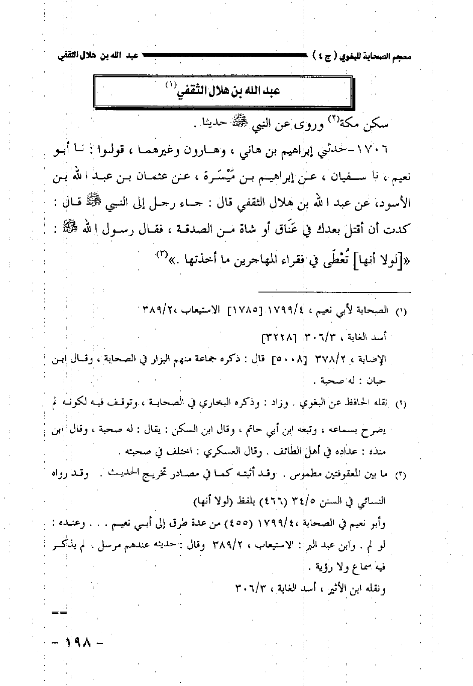 ١٧٠٦ - حدثني إبراهيم بن هاني وهارون وغيرهما قولوا: نا أبو نعيم نا سفيان عن إبراهيم بن ميسرة عن عثمان بن عبد الله بن الأسود عن عبد الله بن هلال الثقفي قال: جاء رجل إلى النبي صلى الله عليه وسلم قال: كدت أن أقتل بعدك في عناق أو شاة من الصدقة فقال رسول الله صلى الله عليه وسلم: " [لولا أنها] تعطى في فقراء المهاجرين ما أخذتها.