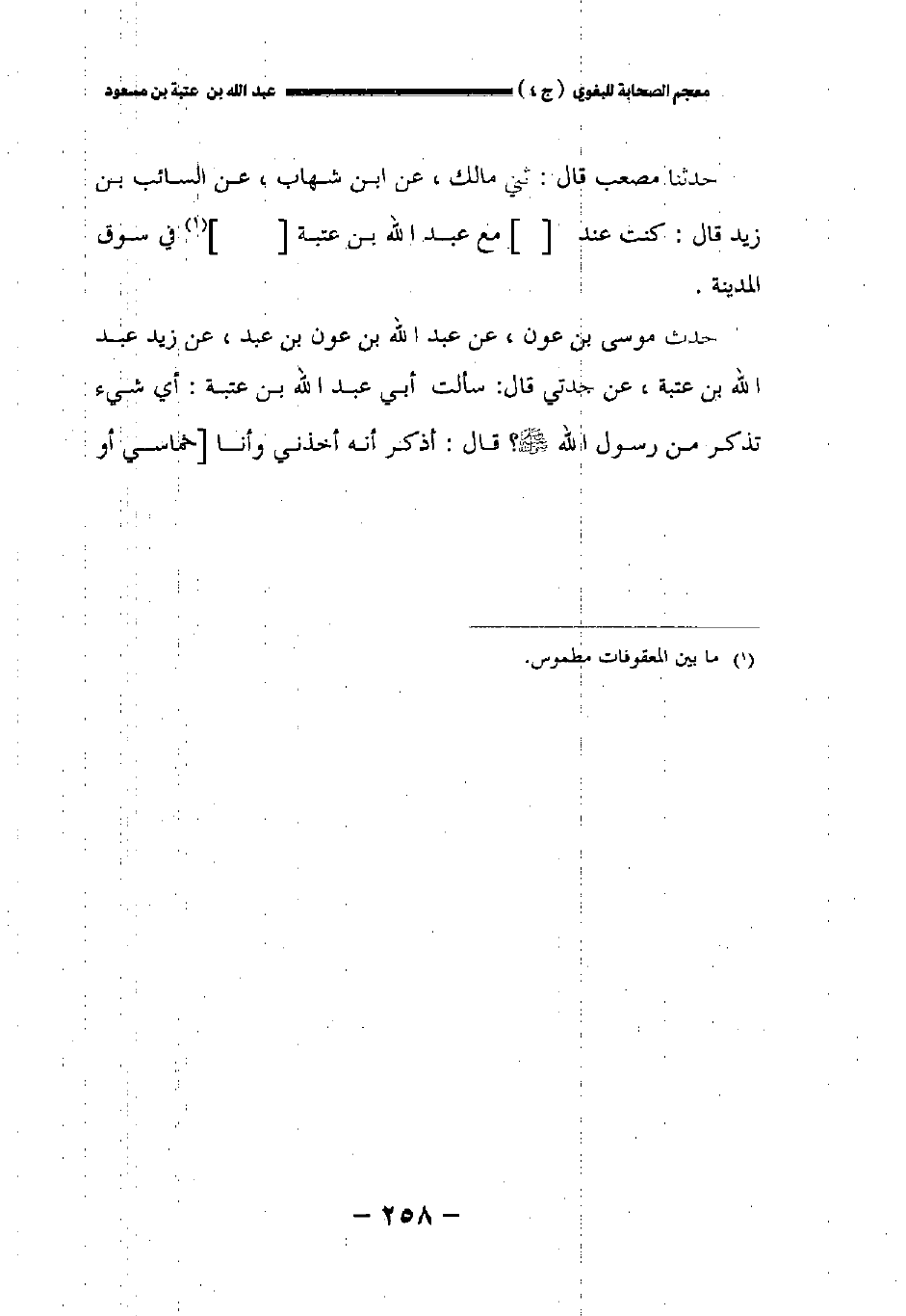 حدثنا مصعب قال: حدثني مالك، عن ابن شهاب، عن السائب بن زيد قال: كنت عند [] مع عبد الله بن عتبة [] في سوق المدينة.