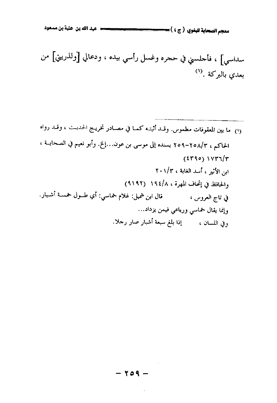 سداسي] فأجلسني في حجره وغسل رأسي بيده ودعا لي [ولذريتي] من بعدي بالبركة.