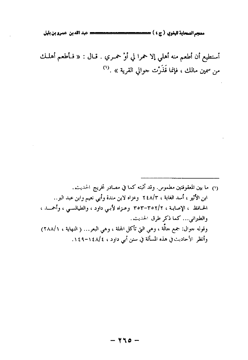 أستطيع أن أطعم منه أهلي إلا حمرا لي أو حمري. قال: " فأطعم أهلك من سمين مالك فإنما قذرت جوالي القرية.