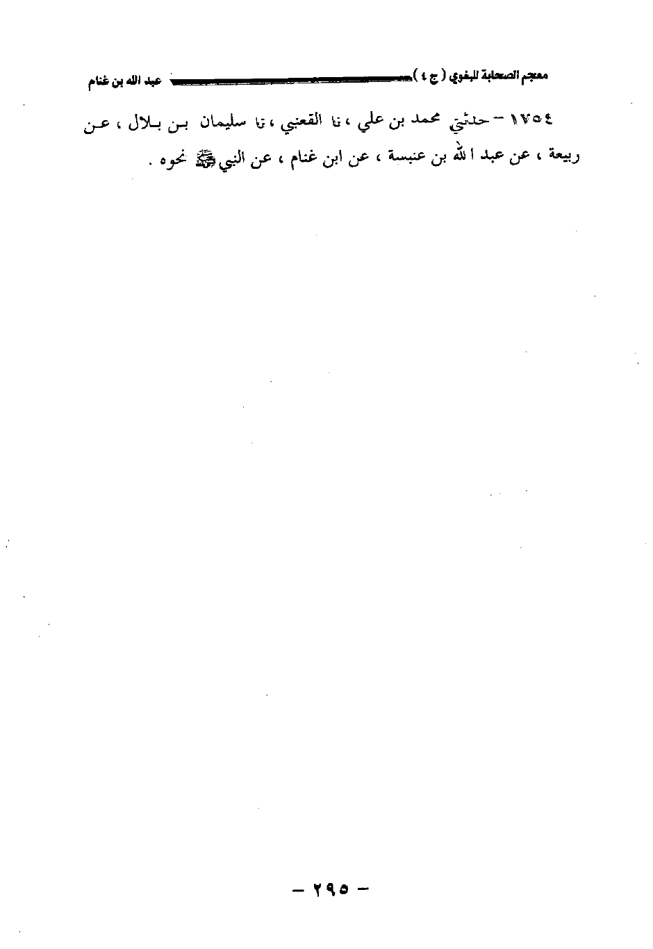 ١٧٥٤ - حدثني محمد بن علي نا القعنبي نا سليمان بن بلال عن ربيعة عن عبد الله بن عنبسة عن ابن غنام عن النبي صلى الله عليه وسلم نحوه.