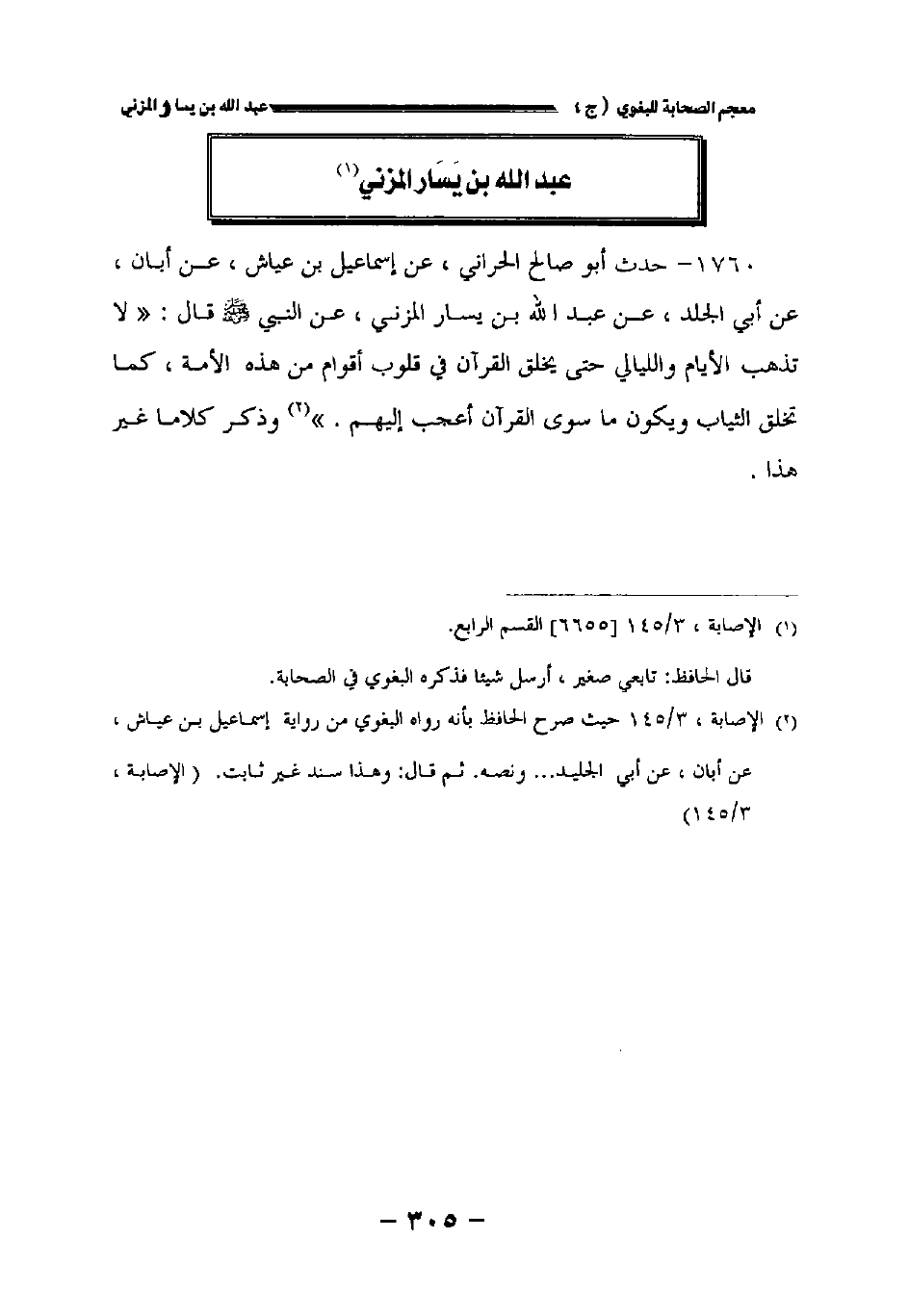 ١٧٦٠ - حدثنا أبو صالح الحراني عن إسماعيل بن عياش عن أبان عن أبي الجلد عن عبد الله بن يسار المزني عن النبي صلى الله عليه وسلم قال: " لا تذهب الأيام والليالي حتى يخلق القرآن في قلوب أقوام من هذه الأمة كما تخلق الثياب ويكون ما سوى القرآن أعجب إليهم " وذكر كلاما غير هذا.