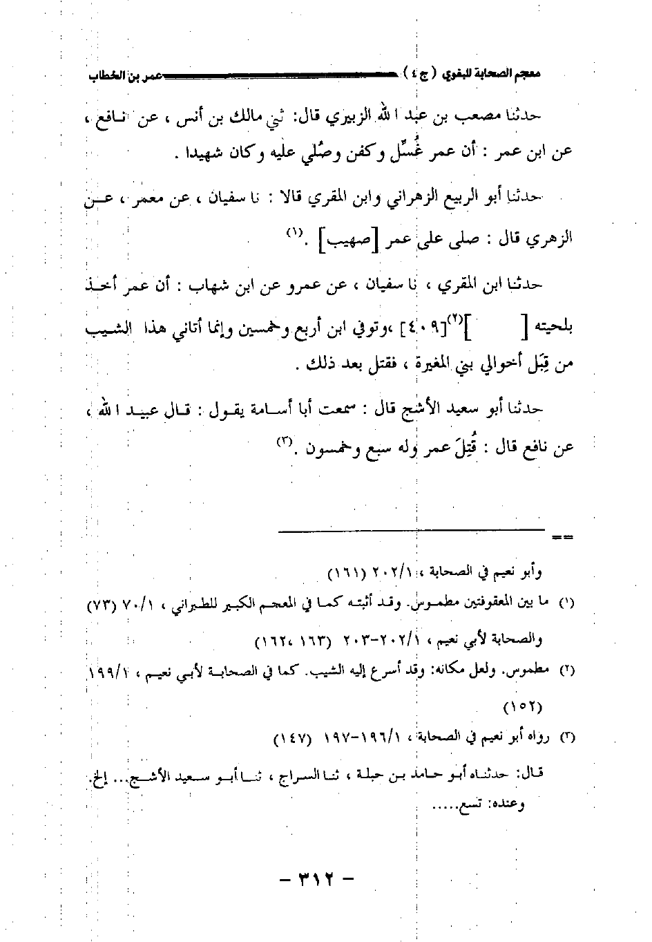 حدثنا مصعب بن عبد الله الزبيري قال: حدثني مالك بن أنس عن نافع عن ابن عمر: أن عمر غسل وكفن وصلي عليه وكان شهيدا.