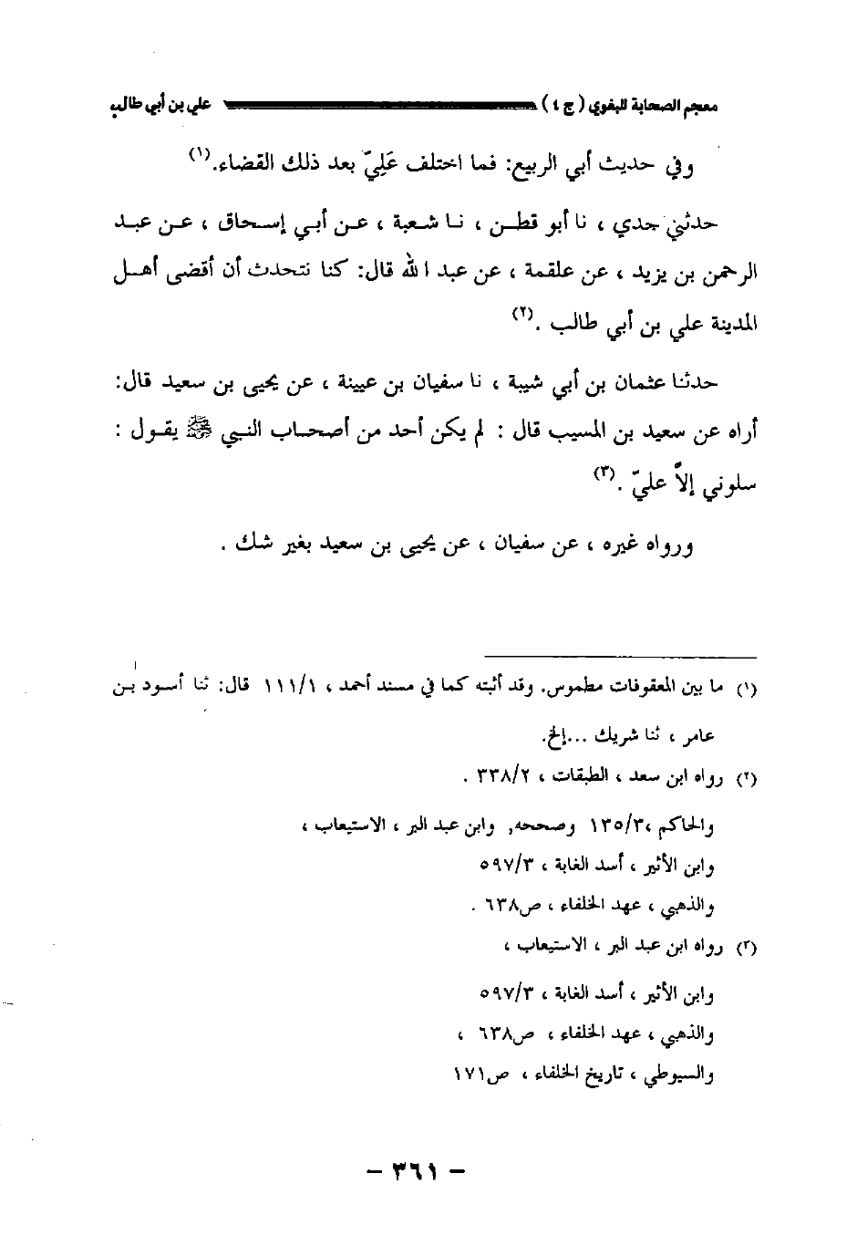 حدثنا عثمان بن أبي شيبة نا سفيان بن عيينة عن يحيى بن سعيد قال: أراه عن سعيد بن المسيب قال: لم يكن أحد من أصحاب النبي صلى الله عليه وسلم يقول: سلوني إلا علي.