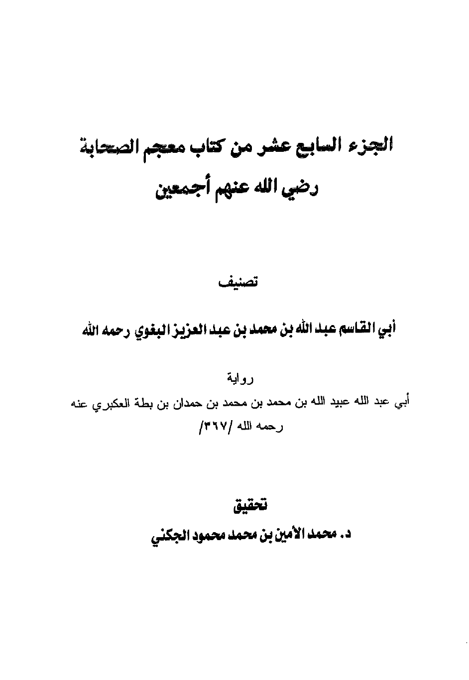الجزء السابع عشر من كتاب معجم الصحابة رضي الله عنهم أجمعين