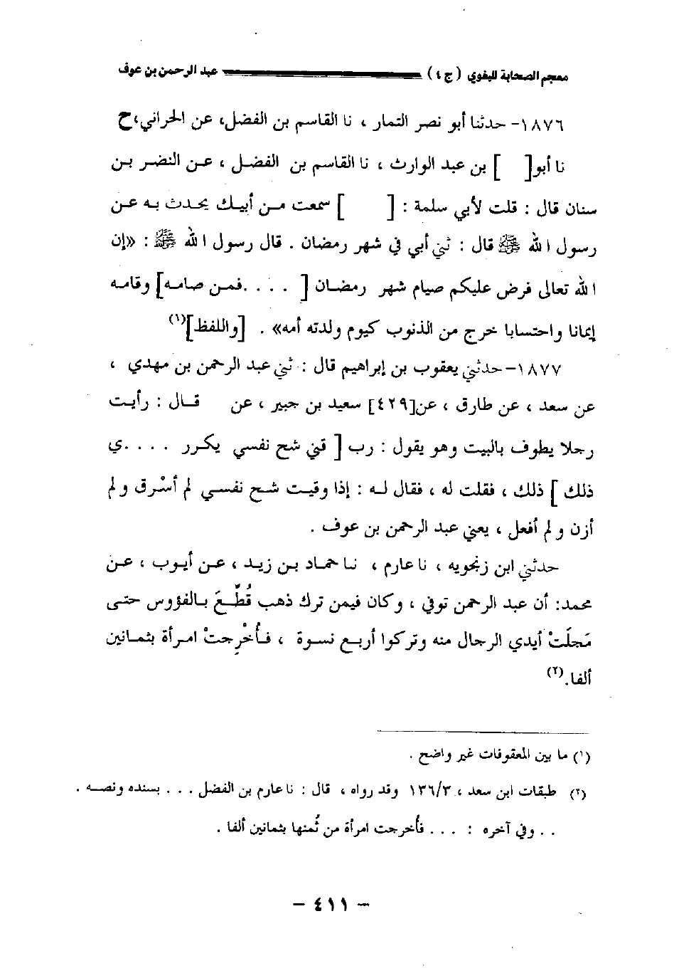 ١٨٧٧ - حدثني يعقوب بن إبراهيم قال: حدثني عبد الرحمن بن مهدي عن سعد عن طارق عن//٤٢٩// سعيد بن جبير عن قال: رأيت رجلا يطوف بالبيت وهو يقول: رب [قني شح نفسي يكرر. . . . . ي ذلك] فقلت له فقال له: إذا وقيت شح نفسي لم أسرف ولم أزن ولم أفعل يعني عبد الرحمن بن عوف.