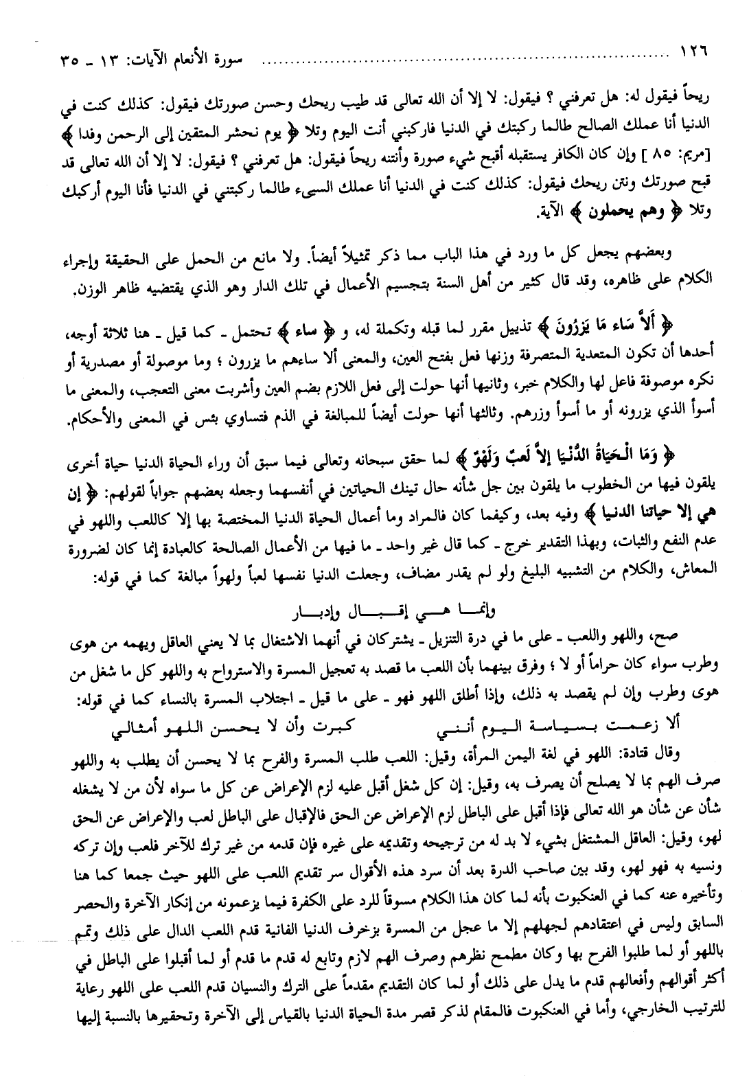 وبعضهم يجعل كل ما ورد في هذا الباب مما ذكر تمثيلا أيضا. ولا مانع من الحمل على الحقيقة وإجراء الكلام على ظاهره، وقد قال كثير من أهل السنة بتجسيم الأعمال في تلك الدار وهو الذي يقتضيه ظاهر الوزن.