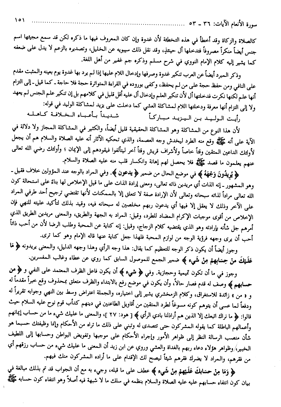 وجوز أيضا أن يكون ذكر الوجه للتعظيم كما يقال: هذا وجه الرأي وهذا وجهه الدليل، والمعنى يريدونه ما عَلَيْكَ مِنْ حِسابِهِمْ مِنْ شَيْءٍ ضمير الجمع للموصول السابق كما روي عن عطاء وغالب المفسرين.
