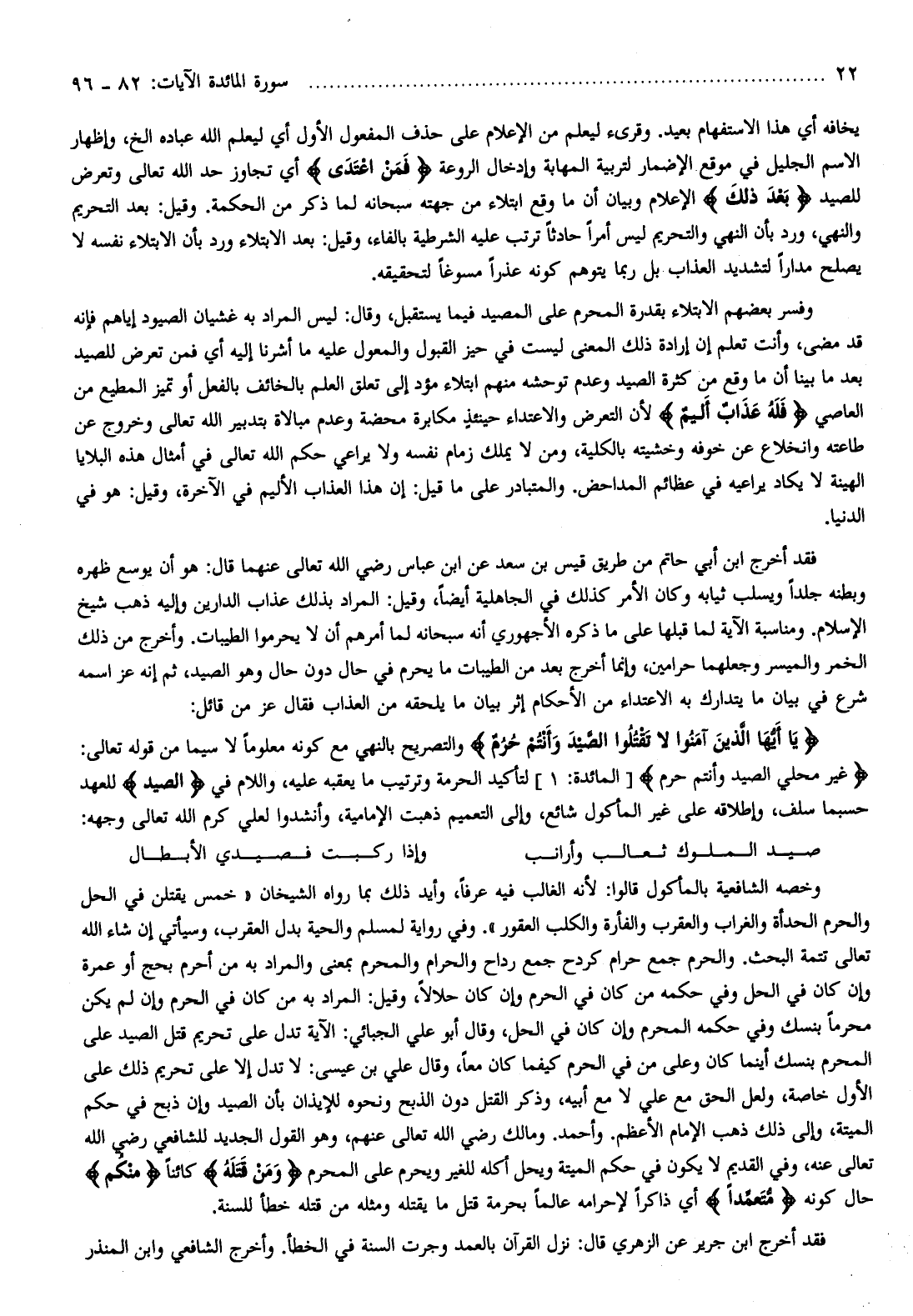 غَيْرَ مُحِلِّي الصَّيْدِ وَأَنْتُمْ حُرُمٌ [المائدة: 1] لتأكيد الحرمة وترتيب ما يعقبه عليه، واللام في الصَّيْدَ للعهد حسبما سلف، وإطلاقه على غير المأكول شائع، وإلى التعميم ذهبت الإمامية، وأنشدوا لعلي كرم الله تعالى وجهه: